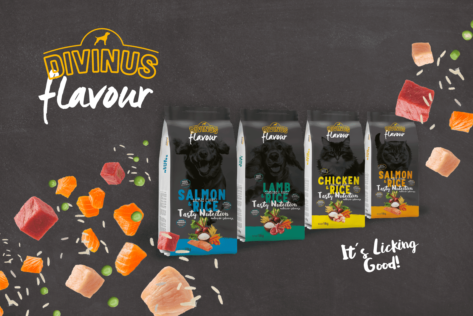 DIVINUS FLAVOUR is the result of the perfect combination between healthy recipes and holistic nutrition, with the best natural and tasty ingredients like Salmon, Lamb, Chicken, and rice for an improved digestion and palatability.