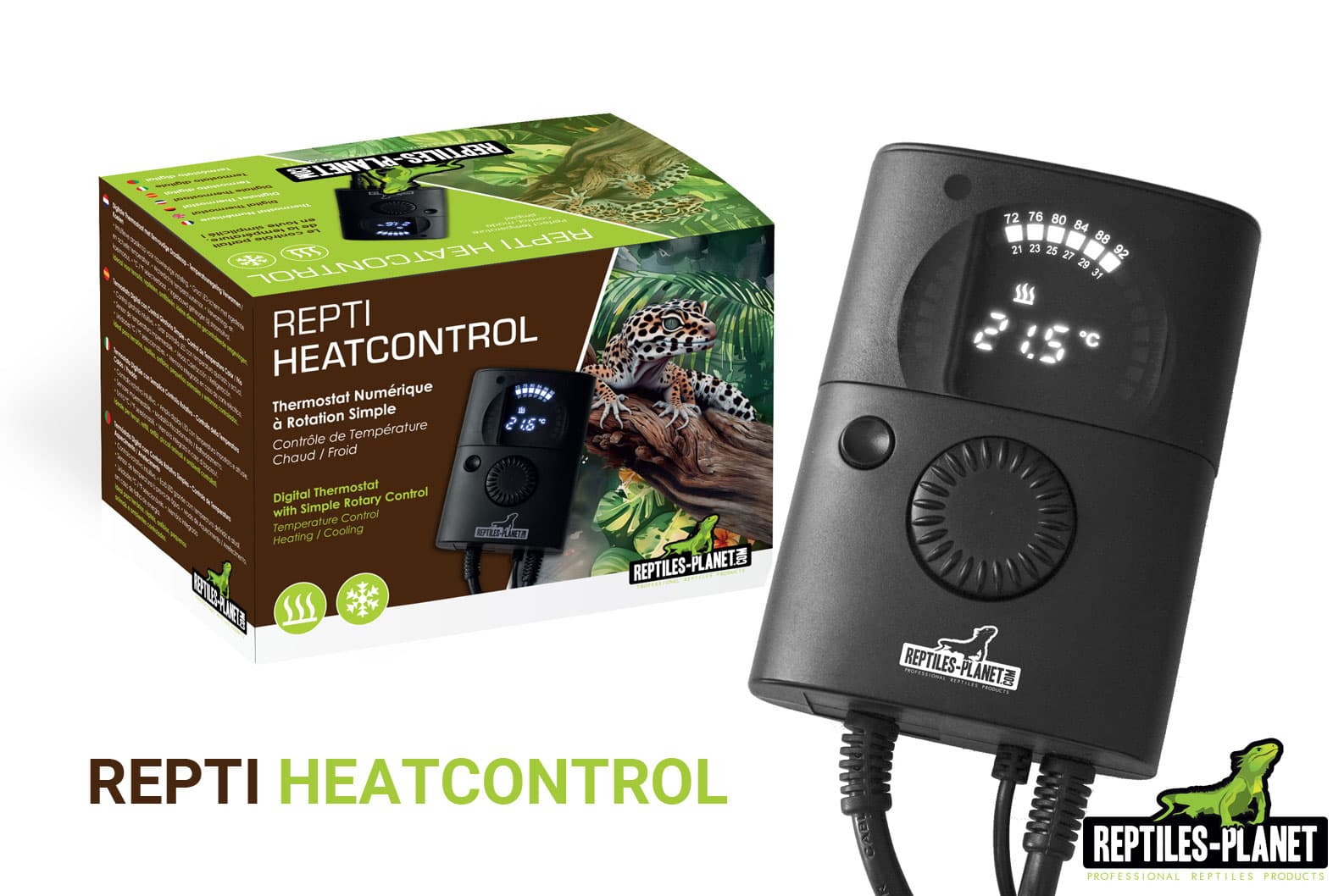- Der Repti Heatcontrol ist ein zuverlässiger Reptilien-Thermostat zur präzisen Steuerung von Heiz- oder Kühlgeräten. Das moderne LED-Display sorgt für klare Ablesung, der praktische Drehregler für einfache Anpassung. Einstellungen bleiben bei Stromausfall gespeichert, ein visueller Alarm warnt bei Problemen, und die wasserdichte Sonde sorgt für sichere, langlebige Nutzung.