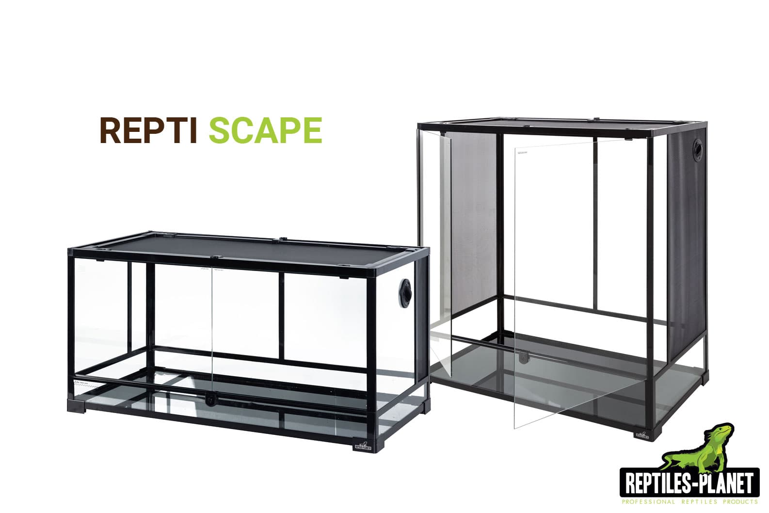 - Repti Scape ist ein Terrarium zum Selbstaufbau aus Aluminium und Glas. Der wasserdichte Boden ermöglicht die Nutzung als Paludarium oder tropisches Terrarium. Obere und untere Lüftungen optimieren den Luftstrom. Kabeldurchführungen erleichtern die Installation. Ein Schloss sichert die Tür. Der erhöhte Boden erlaubt Heizmatten darunter.