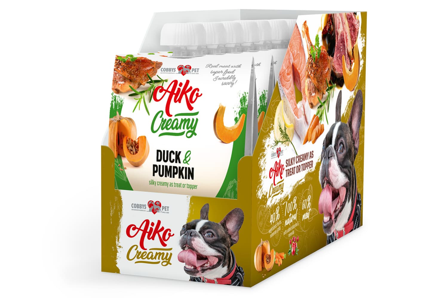 Die Bindung zwischen Halter und Hund wird durch gemeinsame Interaktion gestärkt. AIKO Creamy von COBBYS PET ist eine vielseitige Nahrungsergänzung, die speziell für Hunde entwickelt wurde. Diese flüssige Creme-Snack-Variante bietet eine optimale Kombination aus Geschmack und Funktionalität.