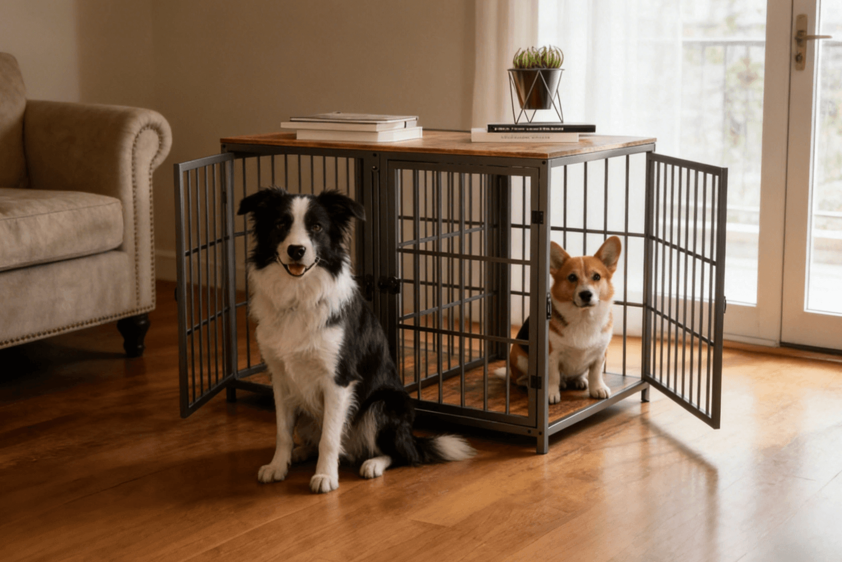 Combined Design Style-Wooden Wire Heavy Duty Furniture Style Dog Crate Dog Cage