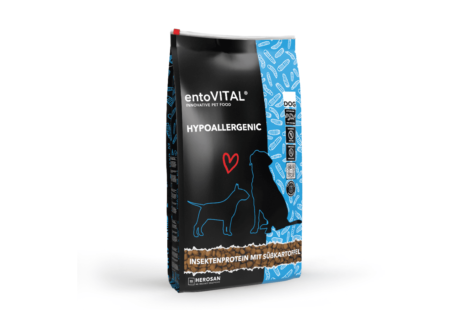 Mit dem Verzicht auf potenziell allergieauslösende Zutaten und Insektenprotein (aus der Schwarzen Soldatenfliege / Hermetia Illucens) als einzige Proteinquelle eignet sich entoVITAL DOG HYPOALLERGENIC zum idealen Trockenfutter für Eliminationsdiäten.