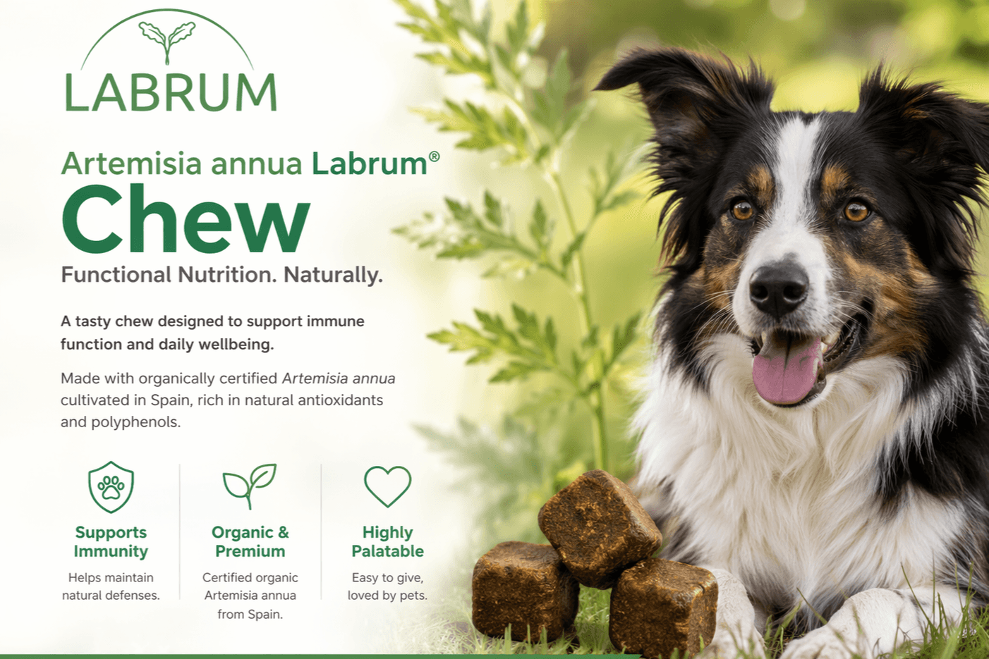 Artemisia annua Labrum® Chew ist ein funktionelles Ergänzungsfuttermittel für Haustiere, das gesundheitliche Vorteile mit hoher Akzeptanz verbindet. Hergestellt aus ökologisch zertifiziertem Artemisia annua aus Spanien, liefert es natürliche Antioxidantien und Polyphenole zur Unterstützung der normalen Immunfunktion und des täglichen Wohlbefindens. Ideal für die langfristige Anwendung.