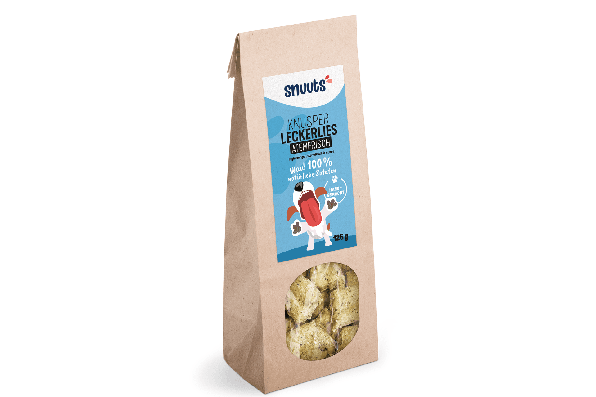 Wir glauben, dass Leckerlis mehr sein sollten als nur eine schnelle Belohnung.Deshalb vereinen unsere Knusperleckerlies AtemfrischHandgemachte Leckereienmit klassischen Kräutern wie Pfefferminze, Fenchel, Petersilie, Salbeiblätter,Süßholzwurzel und Thymian.Ob beim Training, auf dem Spaziergang oder einfachals liebevolle Geste zwischendurch – die kleinen Snacks bringen Abwechslunginden Alltag und sorgen für glückliche Hundeschnauzen.