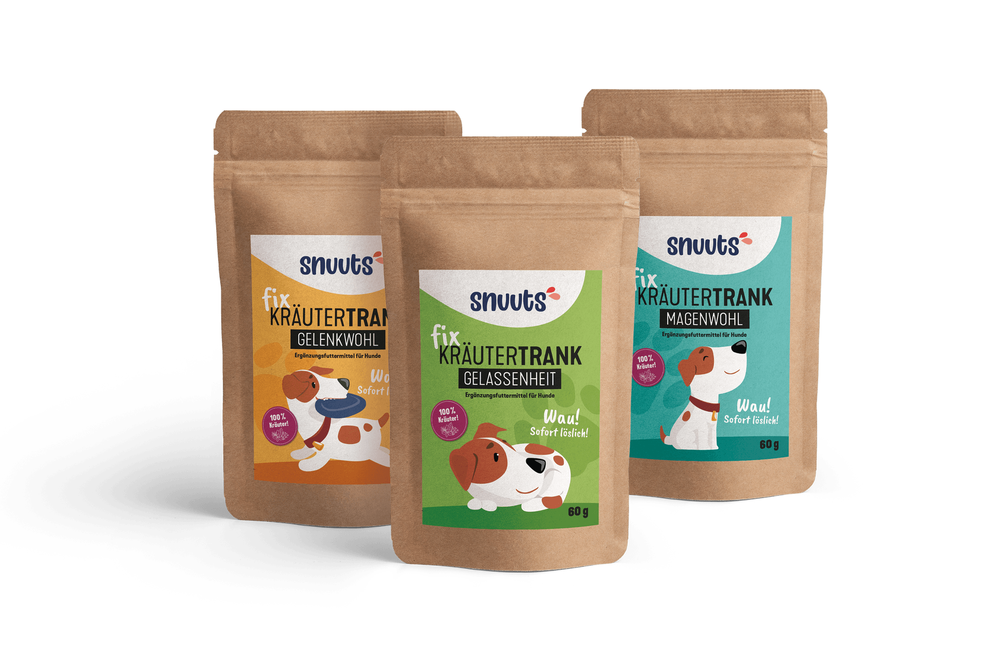 Wir glauben an die Kraft der Natur. Deshalb vereint der snuuts KräutertrankMagenwohl traditionelle Kräuter wieKamille, Melisse, Salbei, Fenchel, Rosmarin,Kümmel und Anis zu einer harmonischen Mischung. Die Kräuter verleihendem Trankseinen einzigartigen Geschmack und können einen wohltuenden Effekt auf denVerdauungsapparat des Hundesentfalten. Praktisch im Alltag: Anders als klassischerTee muss der snuuts-Kräutertrank nicht aufgebrüht werden.So muss er nicht erstabkühlen und ist in Sekundenschnelle verzehrfertig und somit die optimaleTrinkergänzung für deinen Hund.