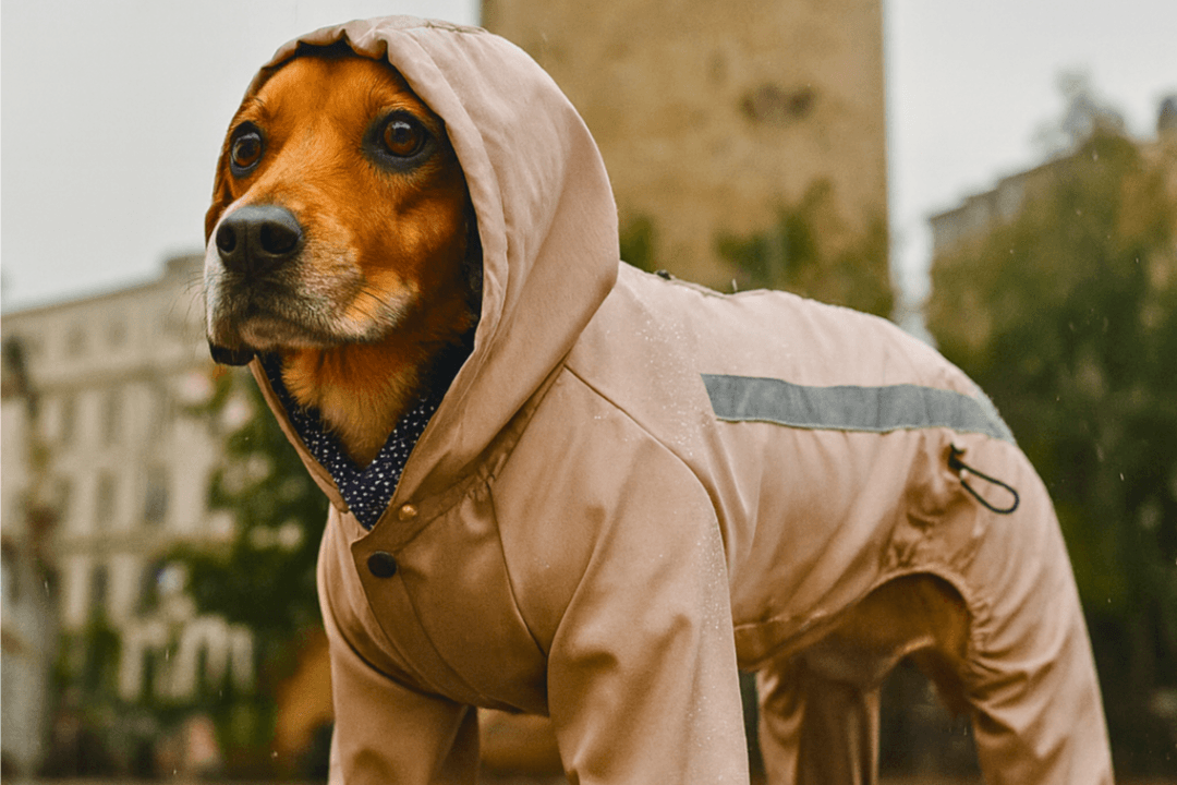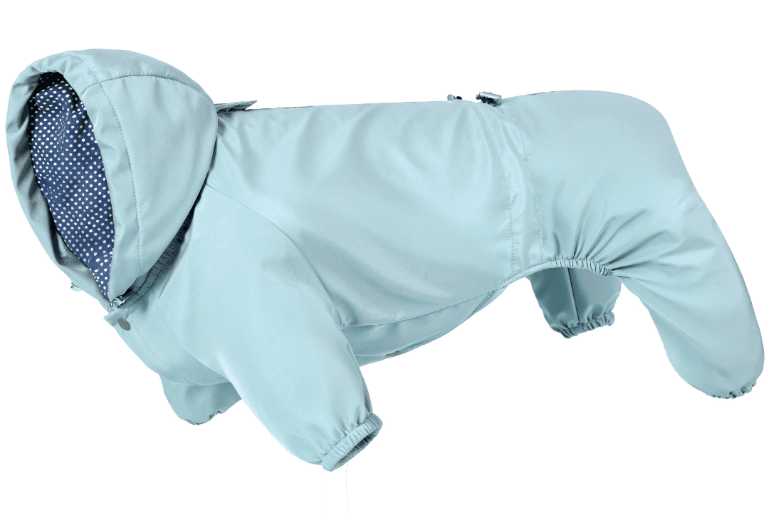 Unser einzigartiges Overall-Design mit vier Beinen bietet umfassenden Schutz vor Regen, Schnee und Schlamm und hält Beine und Bauch des Hundes sauber und trocken.