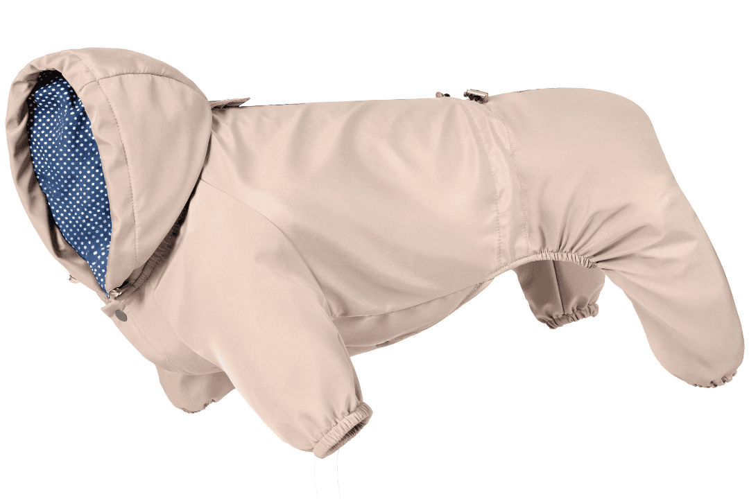 Hergestellt aus robustem, wasserdichtem Stoff bildet dieser Overall eine undurchdringliche Barriere gegen Nässe und sorgt dafür, dass der Hund selbst bei starkem Regen trocken und komfortabel bleibt.