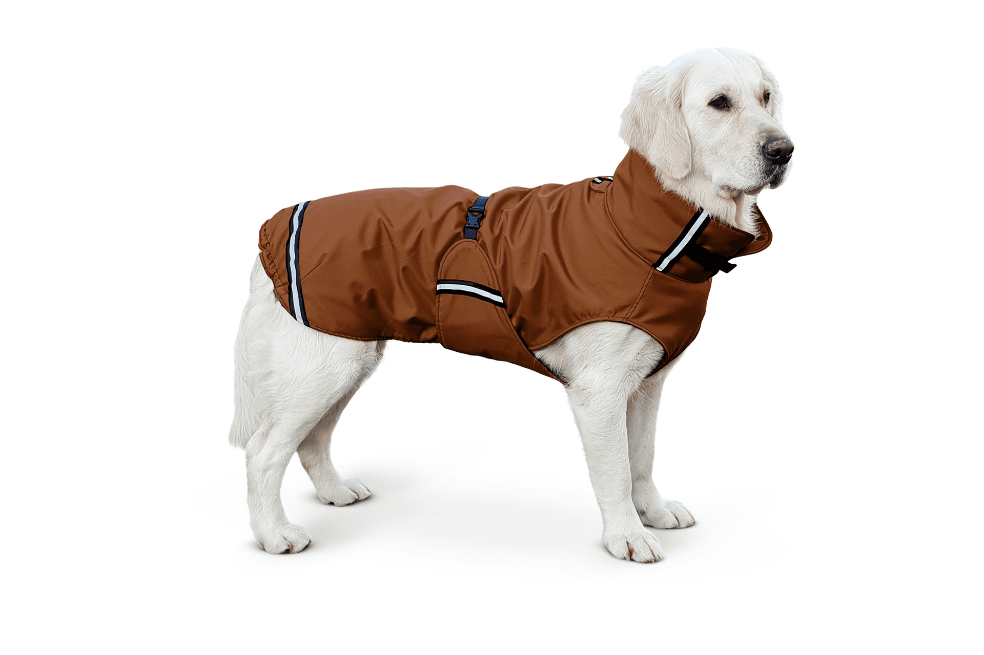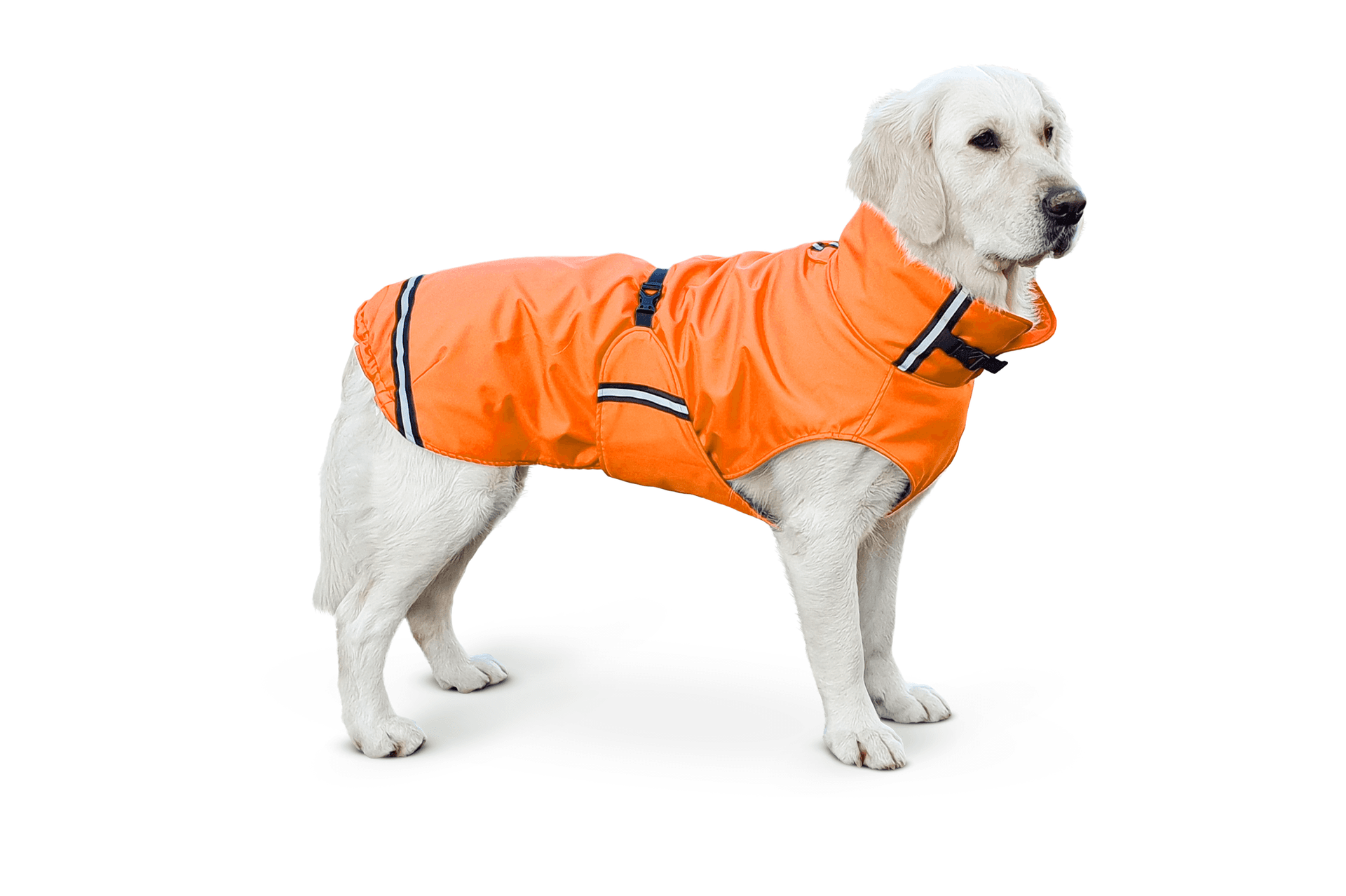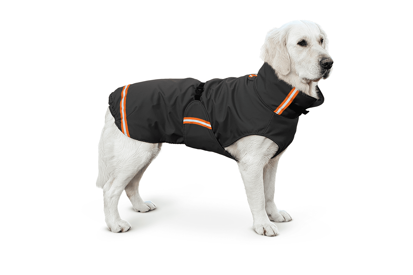 Der verstellbare Rücken- und Brustbereich garantiert eine optimale Passform, und auch Halsband und Rute lassen sich für zusätzlichen Komfort anpassen. Ein praktischer Reißverschluss am Rücken ermöglicht das Anbringen von Leine oder Geschirr. Reflektierende Streifen sorgen für bessere Sichtbarkeit bei Spaziergängen in der Dämmerung.