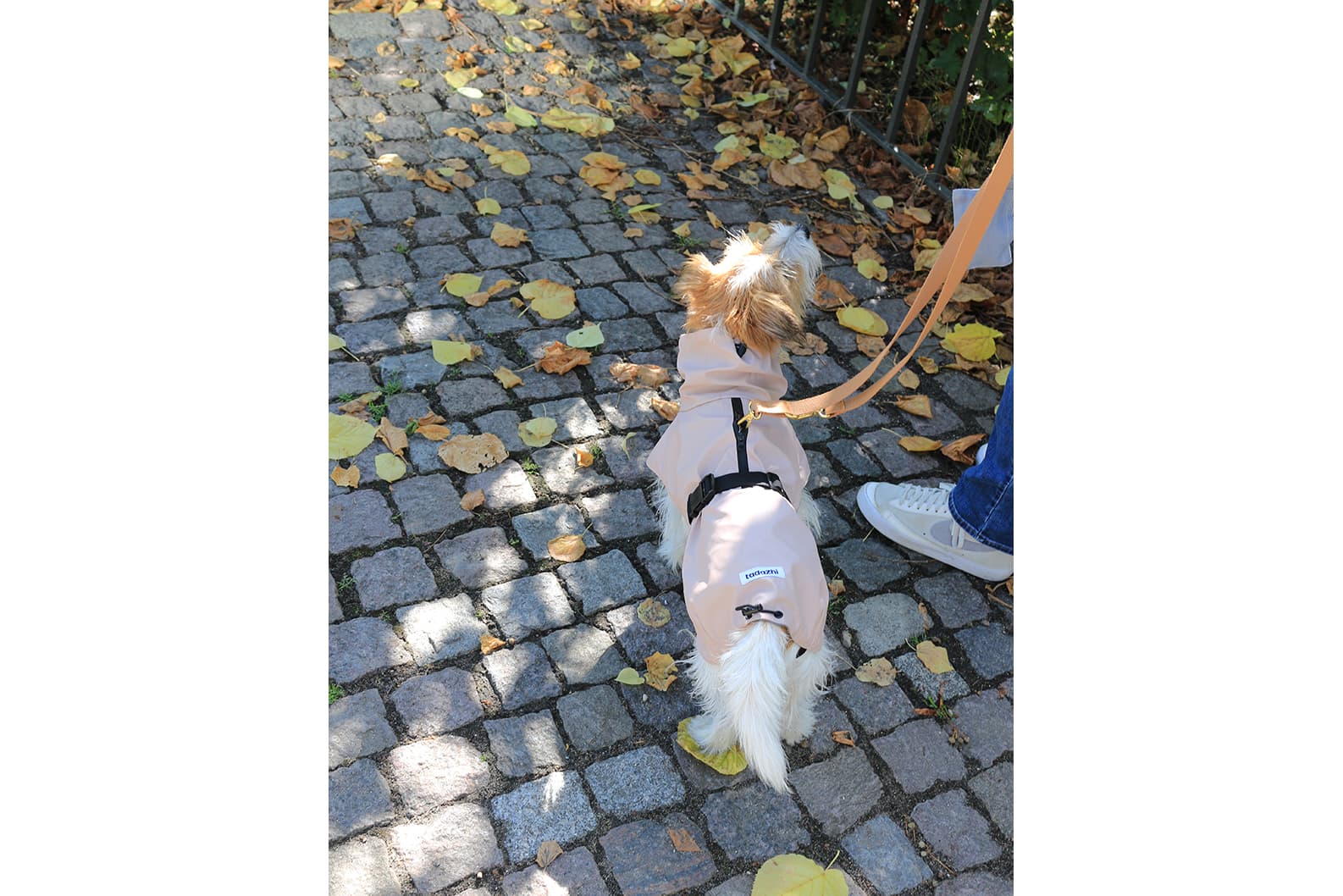 Schlichte Eleganz mit sportlicher Note.Unser wasserdichter Regenmantel schützt Ihren Hund vor Regen und Wind, damit Spaziergänge auch bei schlechtem Wetter Freude machen.