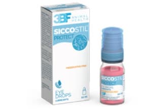 SICCOSTIL® PROTECT eye drops are a preservative-free ophthalmic solution indicatedfor dogs, cats, non-DPA horses and pet rabbits. The hyaluronic acid 0,15% forms a viscoelasticmoisturising barrier that ensures effective and long-lasting hydration and lubrication of the ocularsurface. Vitamin B12, with its characteristic pink colouring and antioxidant, neuroepithelialprotectiveproperties, protects and supports the physiological repair of eye function.