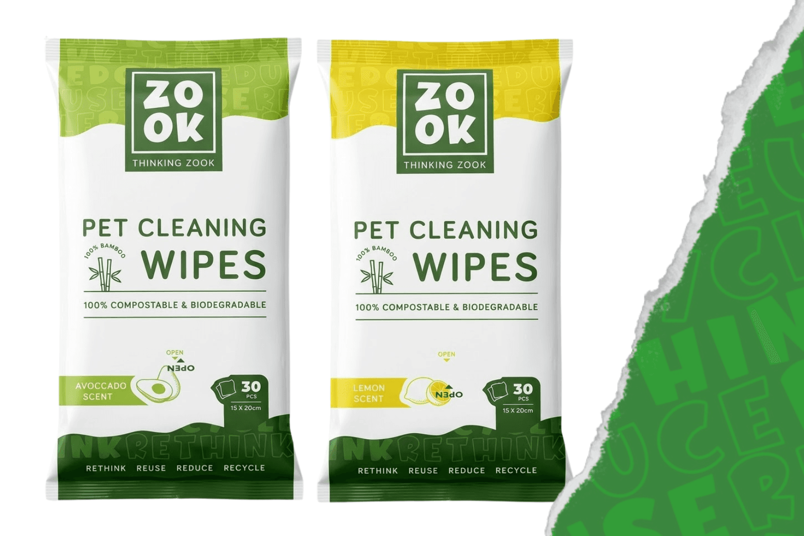 Keep your pet clean, fresh, and comfortable with Zook’s Avocado Scent Cleansing Wipes and Lemon Scent Cleansing Wipes. Made from 100% pure bamboo, these wipes are biodegradable and compostable, making them an eco-friendly choice for responsible pet care.