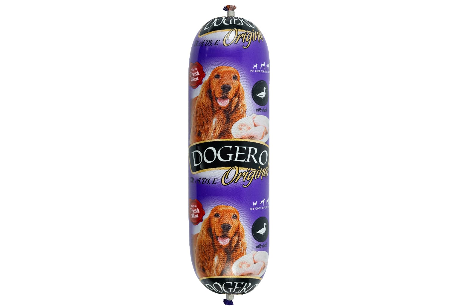 Our basic line of sausages for dogs, DOGERO Original, is available in three flavors - chicken, beef and duck - as well as two convenient serving sizes. It's a complete portion of healthy food for every dog. The safety of the product and its exceptional taste are guaranteed by a highly efficient sterilization process, the use of fresh meat, and the highest quality natural ingredients. Our sausages are made without the addition of any chemical substances.