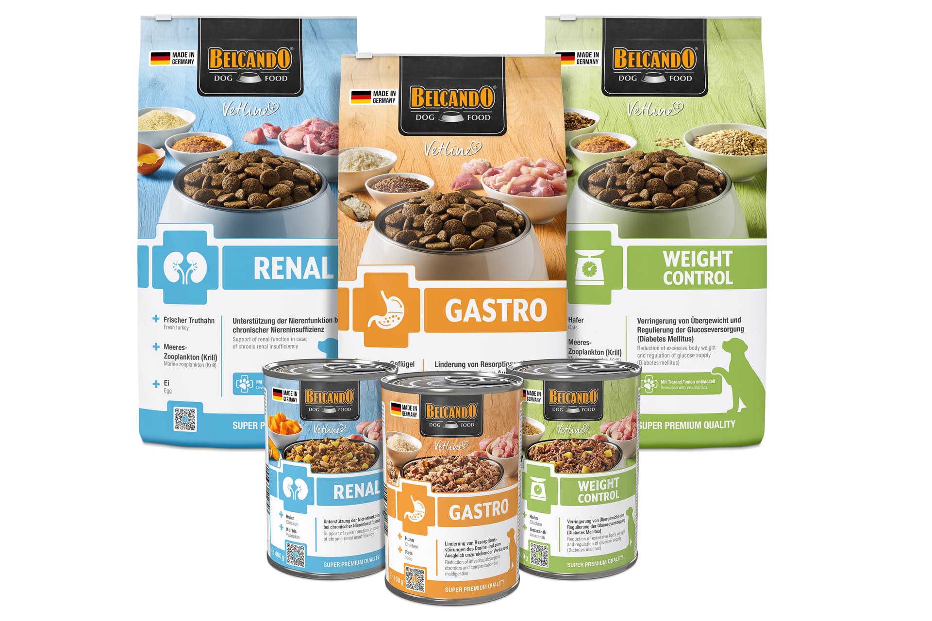 Various health challenges can arise during a dog’s life – from obesity to kidney failure. Many of these problems can be alleviated or even completely eliminated through the targeted use of special feed. For the most common of these complaints, we offer optimally tailored solutions with dry and wet food from the BELCANDO Vetline.