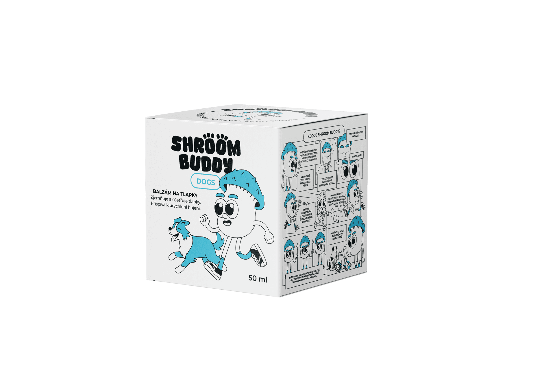 Shroom Buddy Paw Balm is a natural protective balm designed to care for and protect dog paw pads. The balm helps moisturize dry skin, supports regeneration of cracked pads and creates a protective layer against environmental stress such as salt, snow, hot pavement or rough terrain.