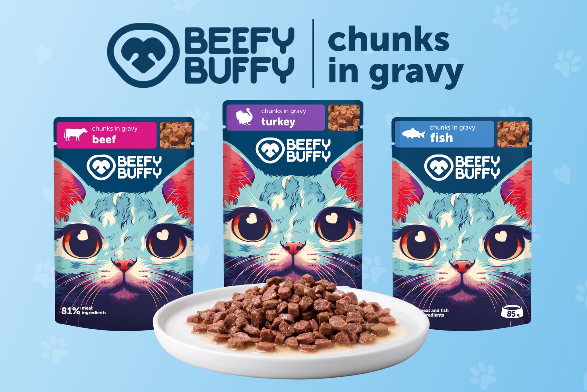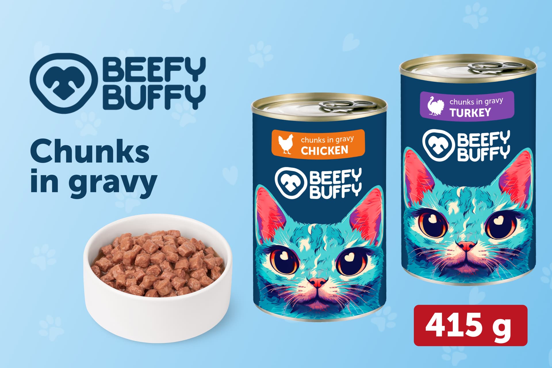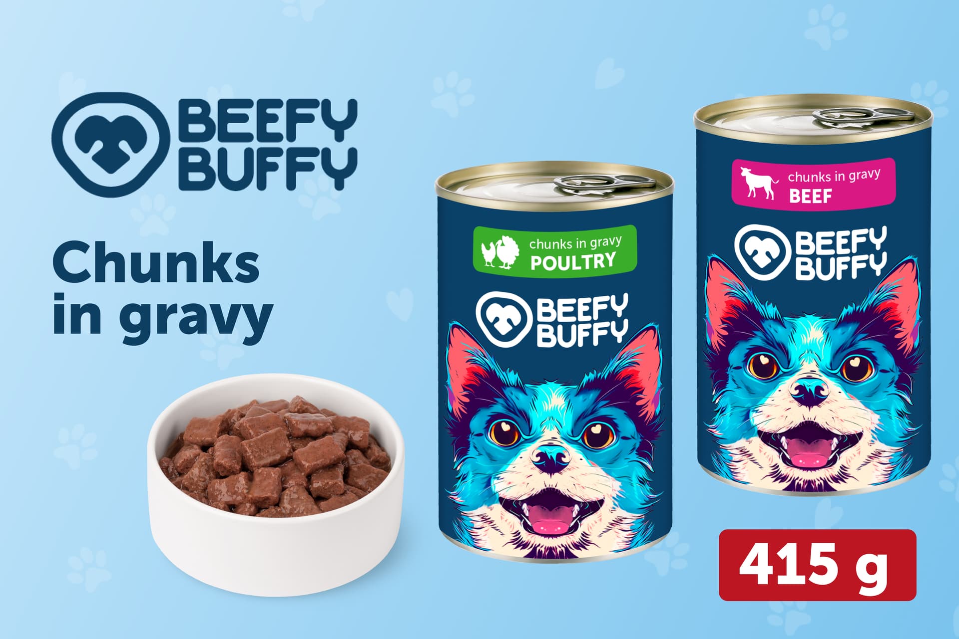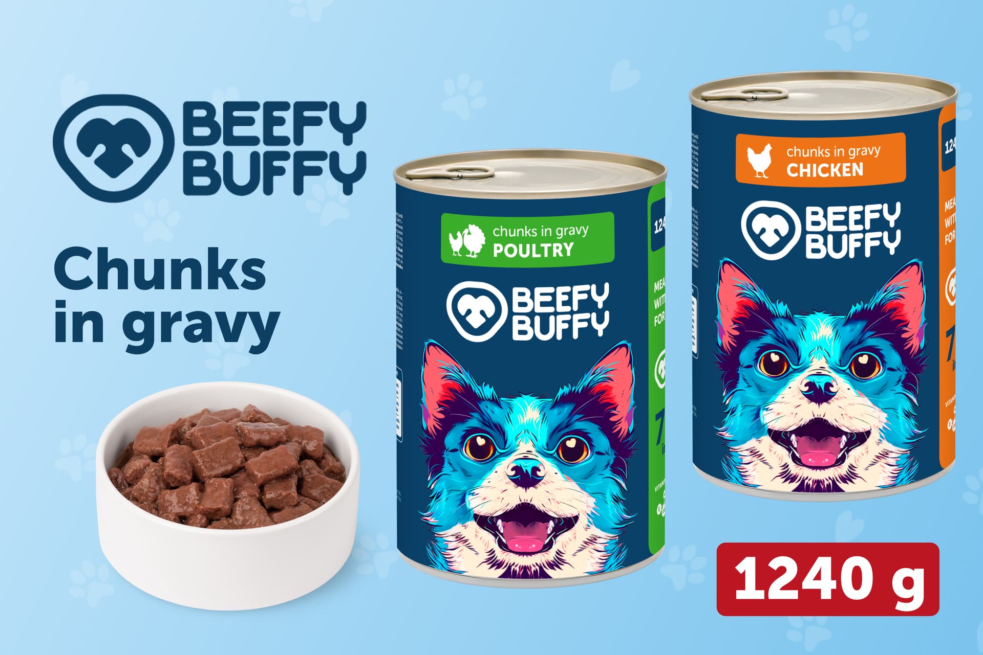 Beefy Buffy is a complete wet food for cats and dogs of the standard category, with a high content of meat ingredients.