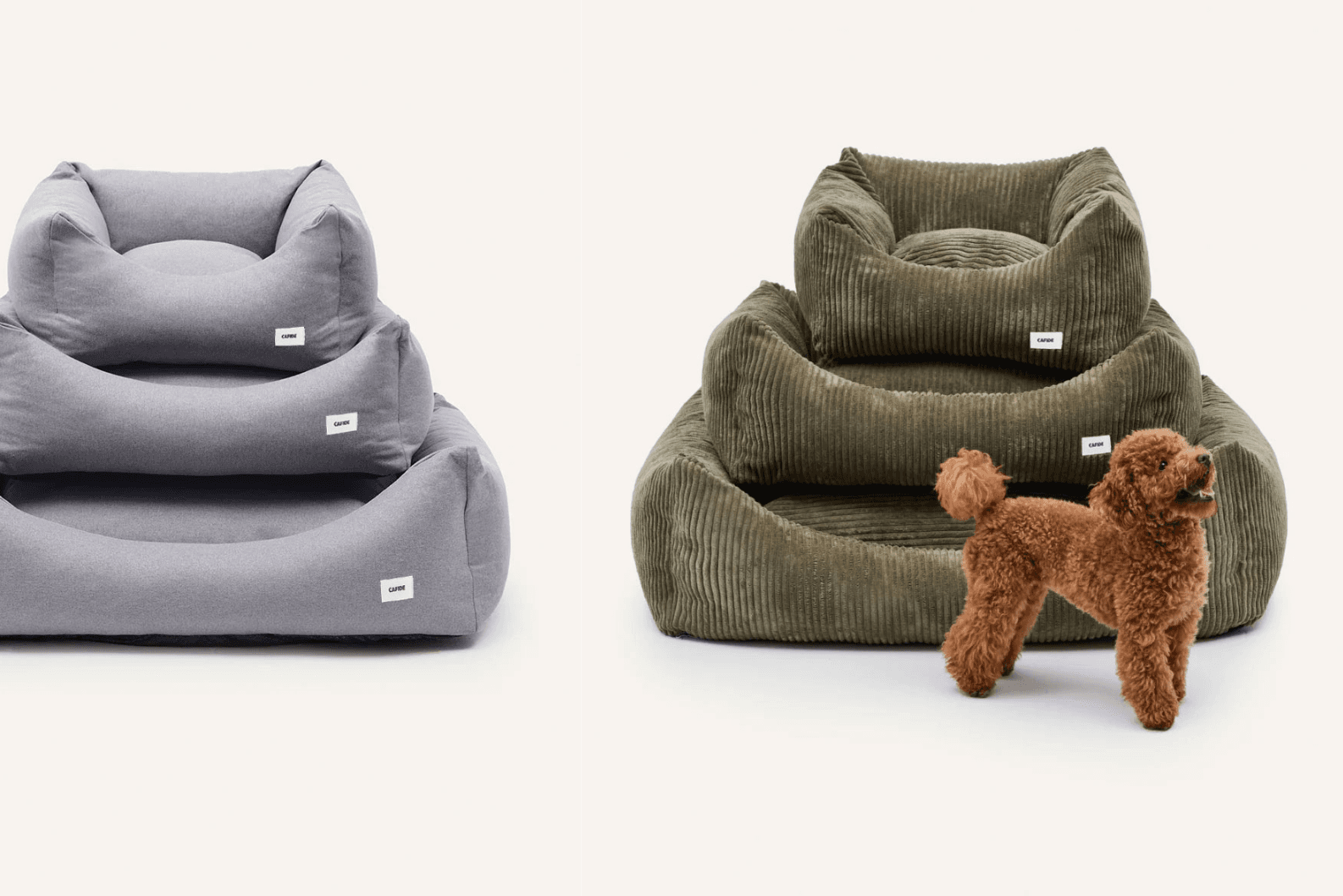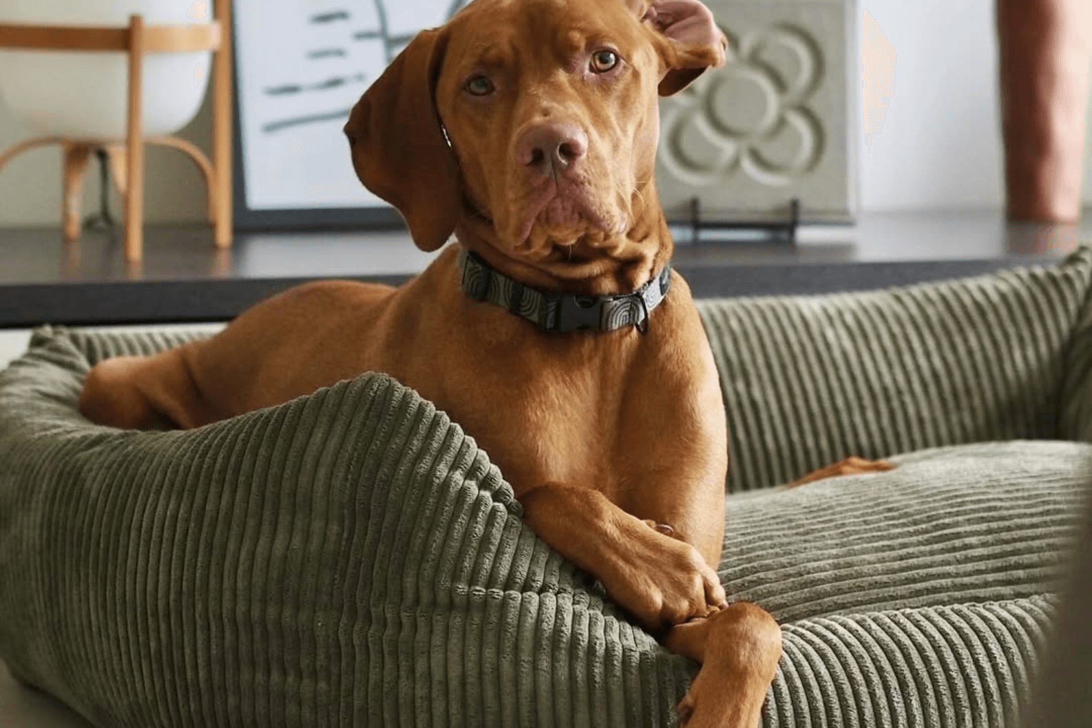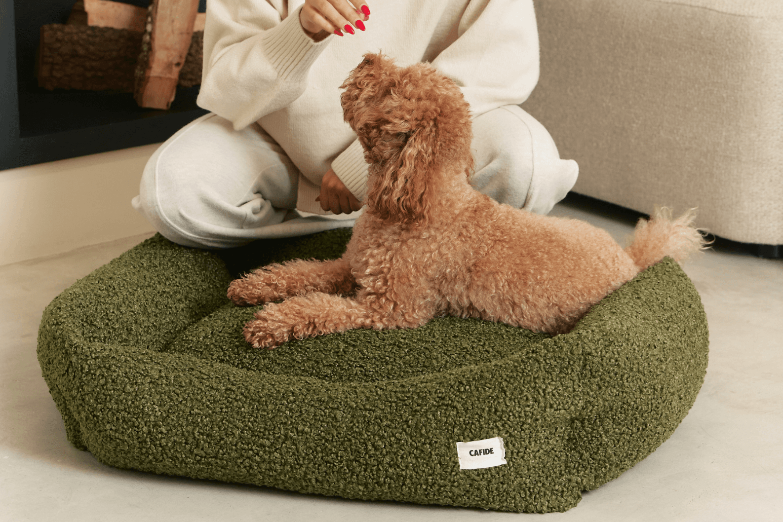 Removable and washable dog bed with a soft, plush corduroy fabric cover made in Europe. The filling is made of recycled foam. The filling can be removed manually to adjust the height for all types of dogs.
