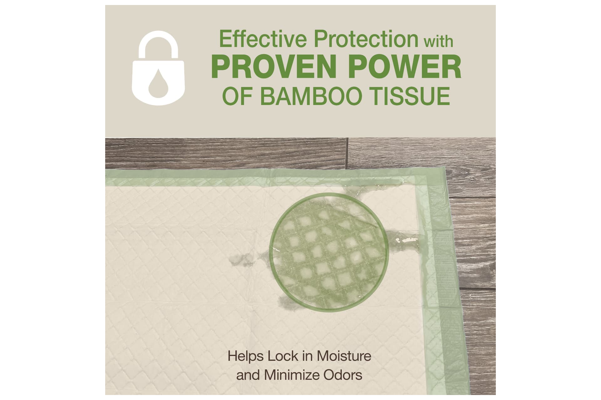 - Pee pads made with FSC-certified bamboo tissue absorb moisture and minimize odor