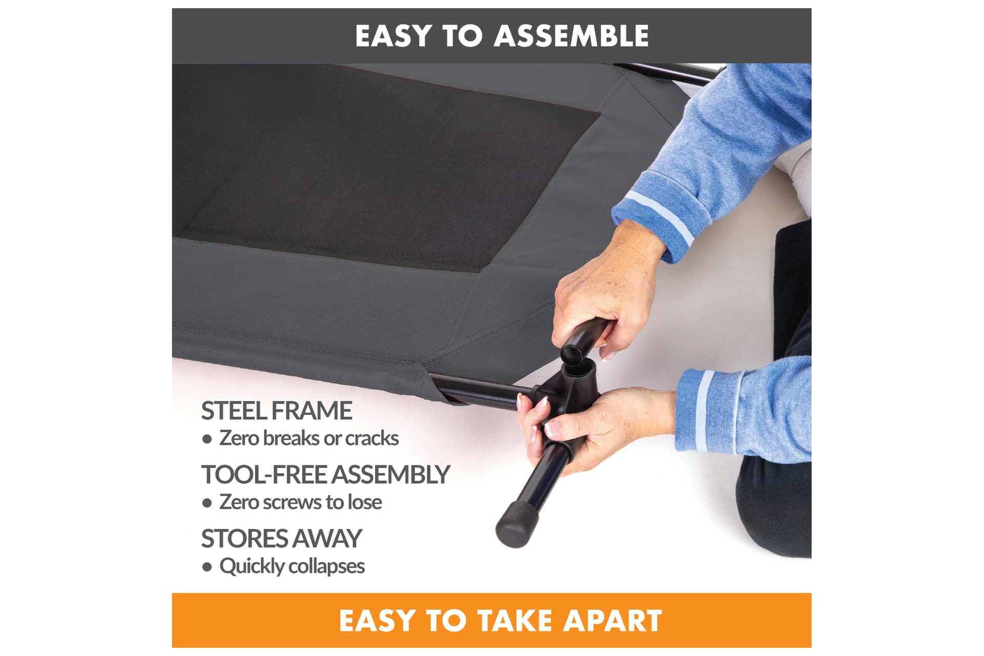 - Raise pet bed promotes airflow, keeping pets cool in warm seasons, while providing ideal ground clearance to prevent contact with wet or cold surfaces, keeping them away from dirt, bugs, ticks, ants, etc