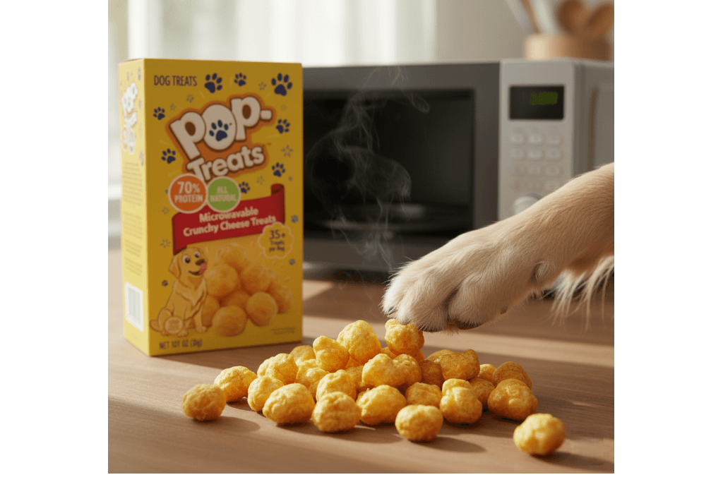Pop-Treats : Inspired by the popularity of popcorn, we've come up with a brand new concept in pet treats. Each Pop Treats pack is filled with small pieces of cheese that come to life in mere seconds in the microwave. So convenient and easy, it's like baking popcorn at home, but for your dog! Once heated, the smell of the freshly-made crunchy cheese treat is sure to make your dog's tail wag with delight. And the best part? Our product is all-natural, made from 100% milk and contains over 66% protein. Even better, it's lactose free so it's fully digestible. Treat your furry friend to a unique and delicious snack with Pop Treats. Give your pet the best with our fun and innovative concept!