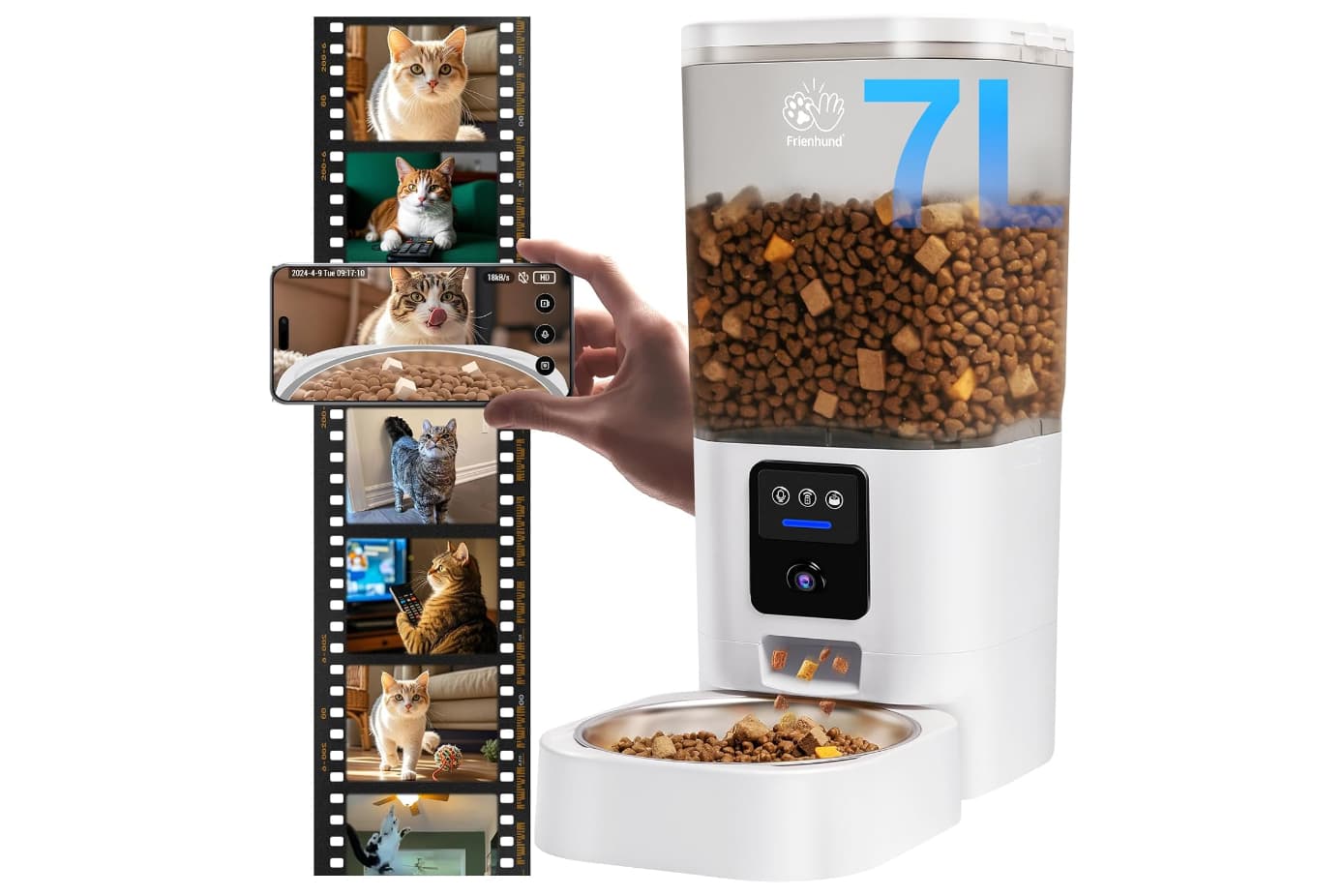 FrienHund Automatic Cat Feeder with 2K Camera: 5G WiFi Automatic Dog Feeder with Night Vision,Cat Food Dispenser with 7L Large Food Storage Container for Multiple Pet,Detachable for Easy Clean -29 Cup