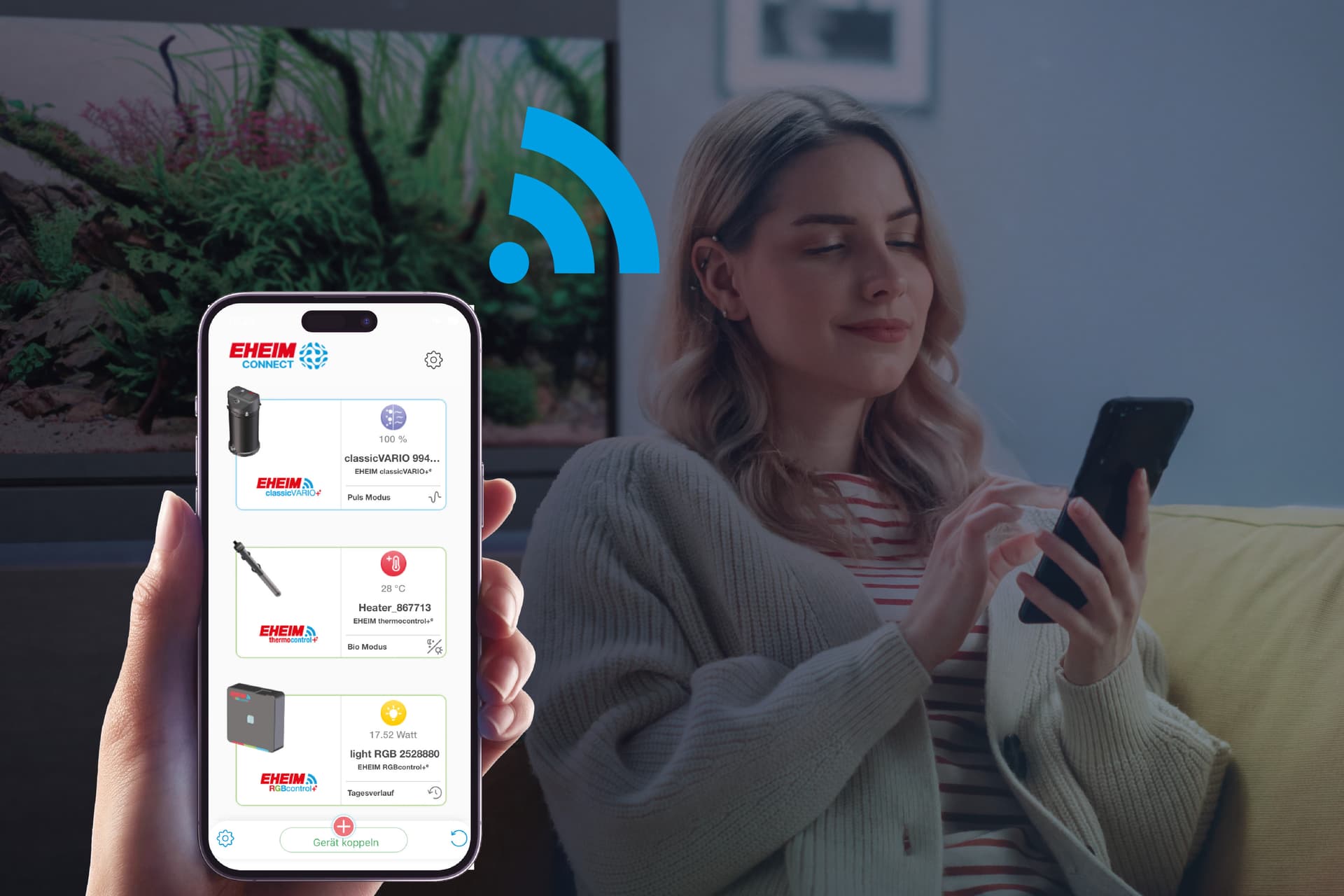EHEIM has been driving digitisation in aquatics for years. Over time more and more aquarium technology has been developed that features digital controls. This includes several WiFi-enabled products that can be configured and monitored wirelessly via smartphone, tablet or PC. The "EHEIM Digital" range has everything from aquarium filters, aquarium lighting and atmospheric cabinet lighting and heating to automatic feeders, climate control units, UV clarifiers and CO2 supply systems.