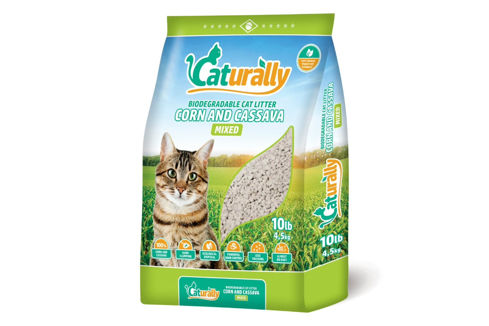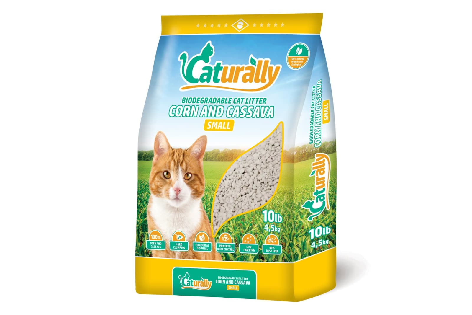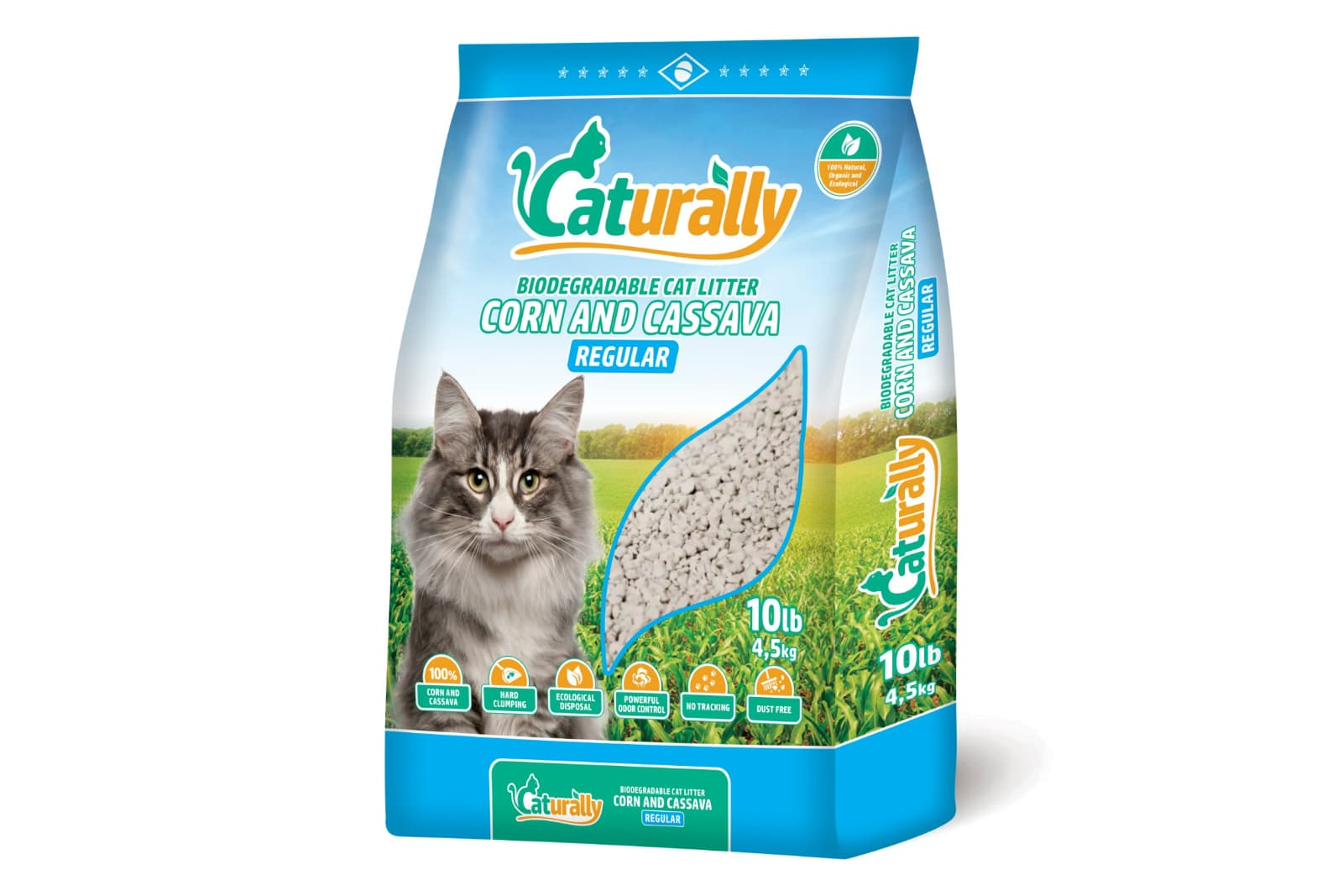 Caturally presents the ideal solution for your cat´s sanitary higiene through the perfect combination of corn and cassava. A cat litter with extraordinary performance and environmentally responsible, 100% natural and biodegradable, in three different grain sizes.
