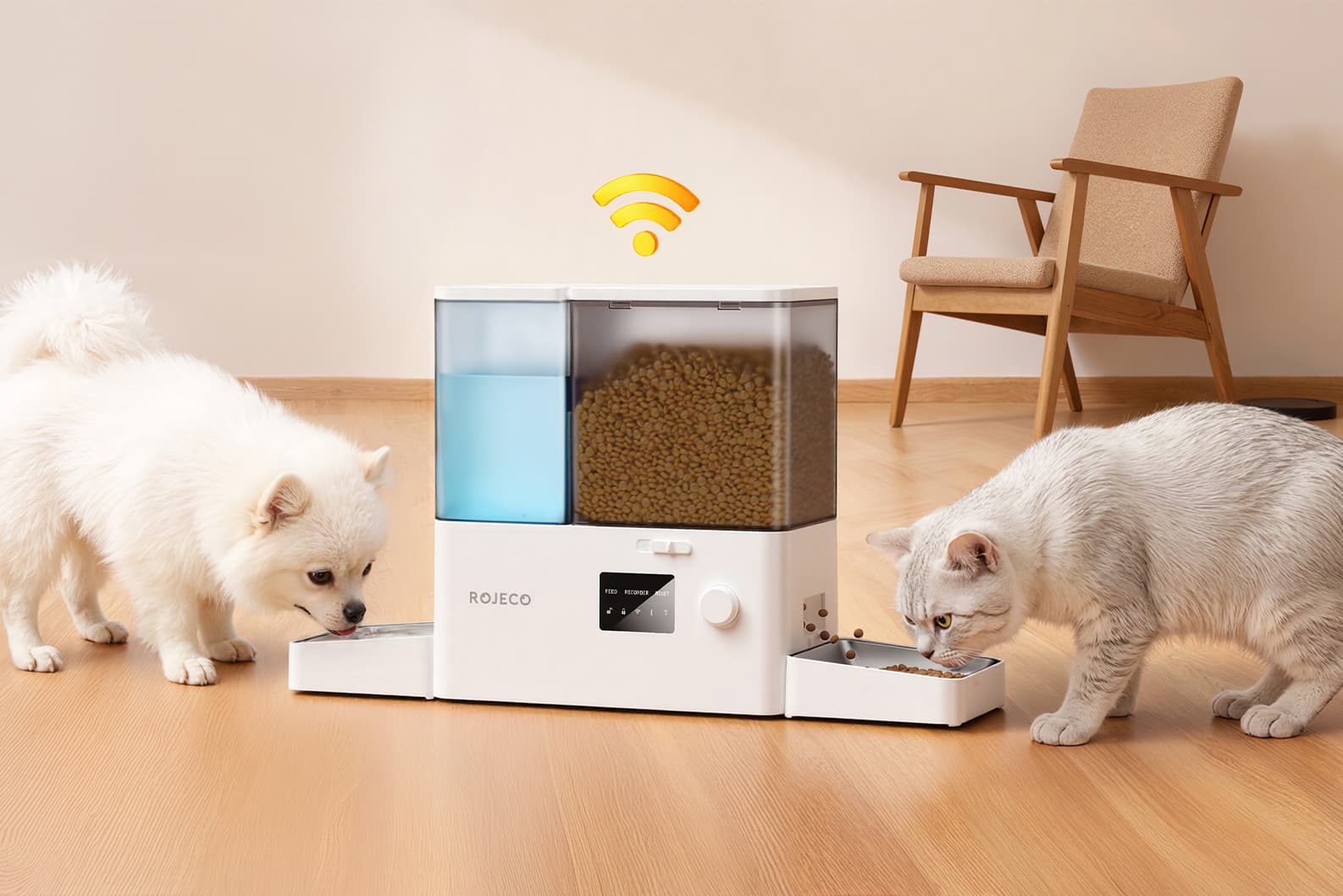The ROJECO 2-in-1 WiFi Pet Feeder & Gravity Water Fountain is an all-in-one smart solution designed to meet your pet’s daily feeding and drinking needs simultaneously. With smart app control, large capacity, and thoughtful design, it ensures your pet enjoys fresh food and water—whether you’re at home or away.