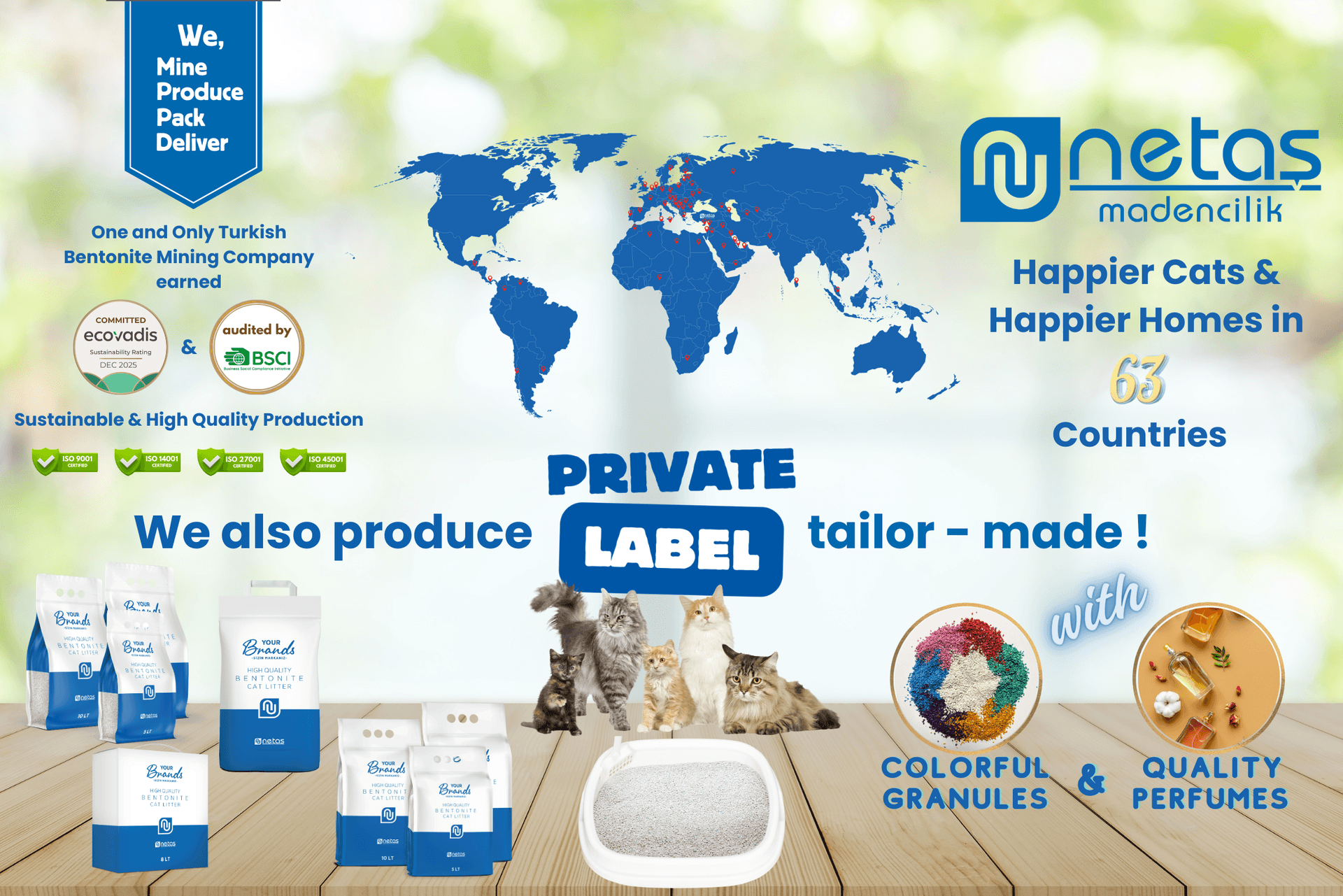 - Tailor-made private label options, colorful granules, extensive perfume options, premium packaging alternatives like craft, box, flat bottom, quadro etc