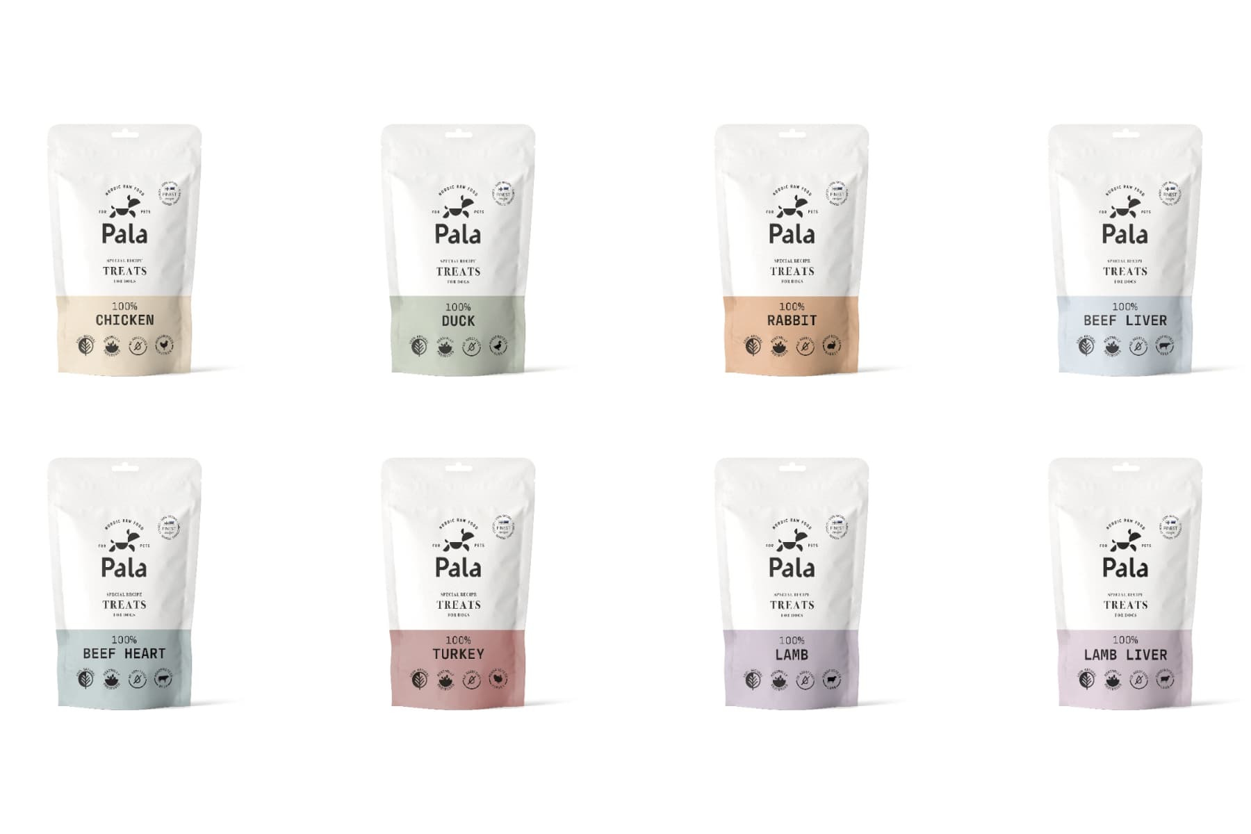 - Pala treats are single‑ingredient, air‑dried raw treats made from 100% natural meat or organs such as chicken, turkey, duck, rabbit, lamb, beef liver, or beef heart.
