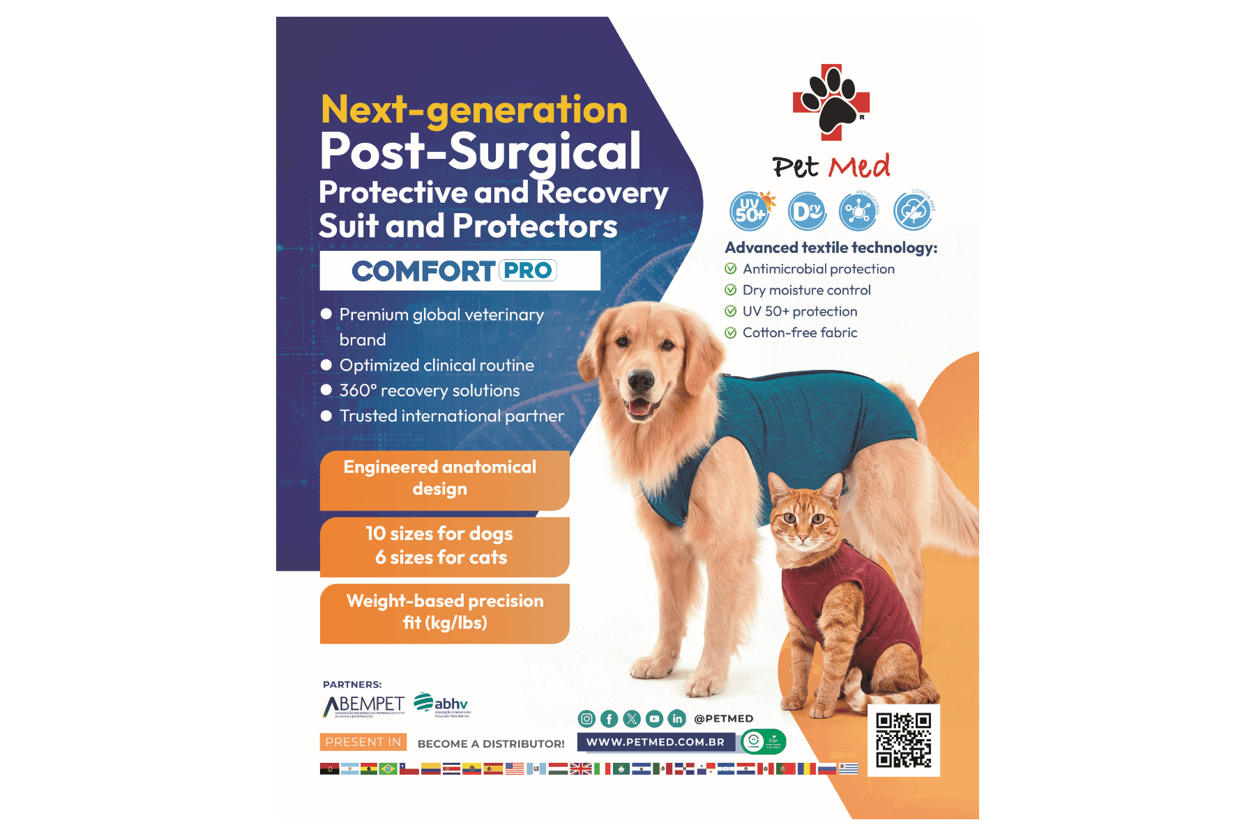 - Beyond post-surgical garments, Pet Med offers a complete portfolio of protective solutions, supporting multiple veterinary specialties and different stages of pets’ lives — from routine procedures to complex clinical care.