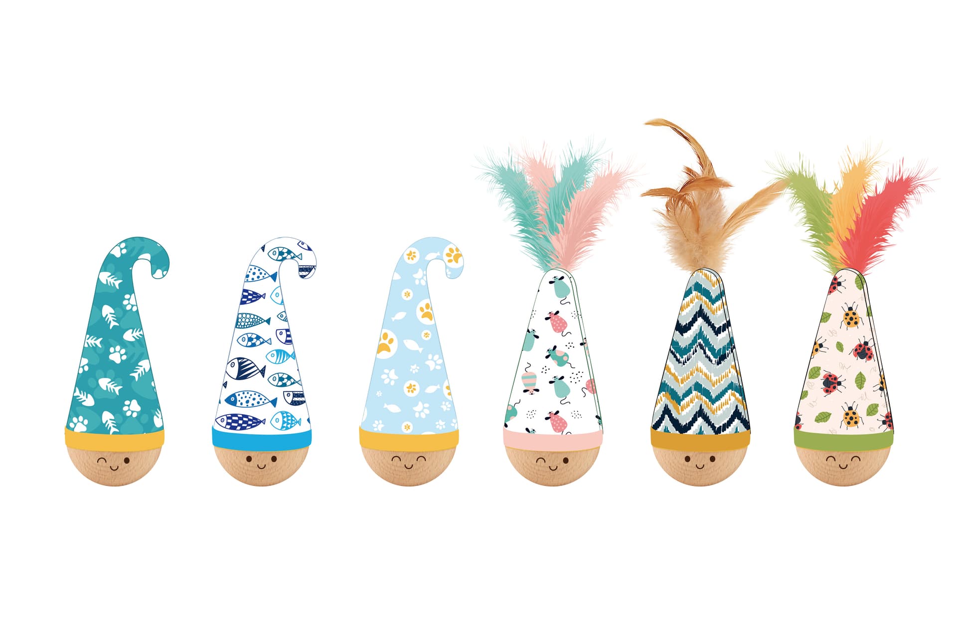 Interactive Wobble Wooden Base Cat Toy with Feather & Bell – Plush Fabric Tumbler for Kittens & Cats