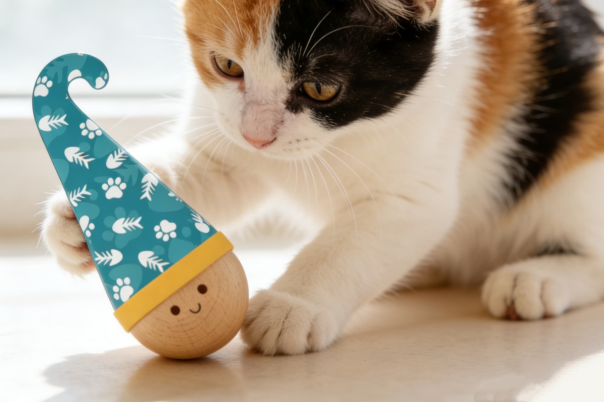 This interactive wobble cat toy is designed to captivate your feline friend’s natural hunting instincts and keep them entertained for hours. Crafted with a solid wooden hemisphere base, it features a unique tumbler design that wobbles playfully when swatted or pounced on, always returning to an upright position—ensuring endless engagement without tipping over.
