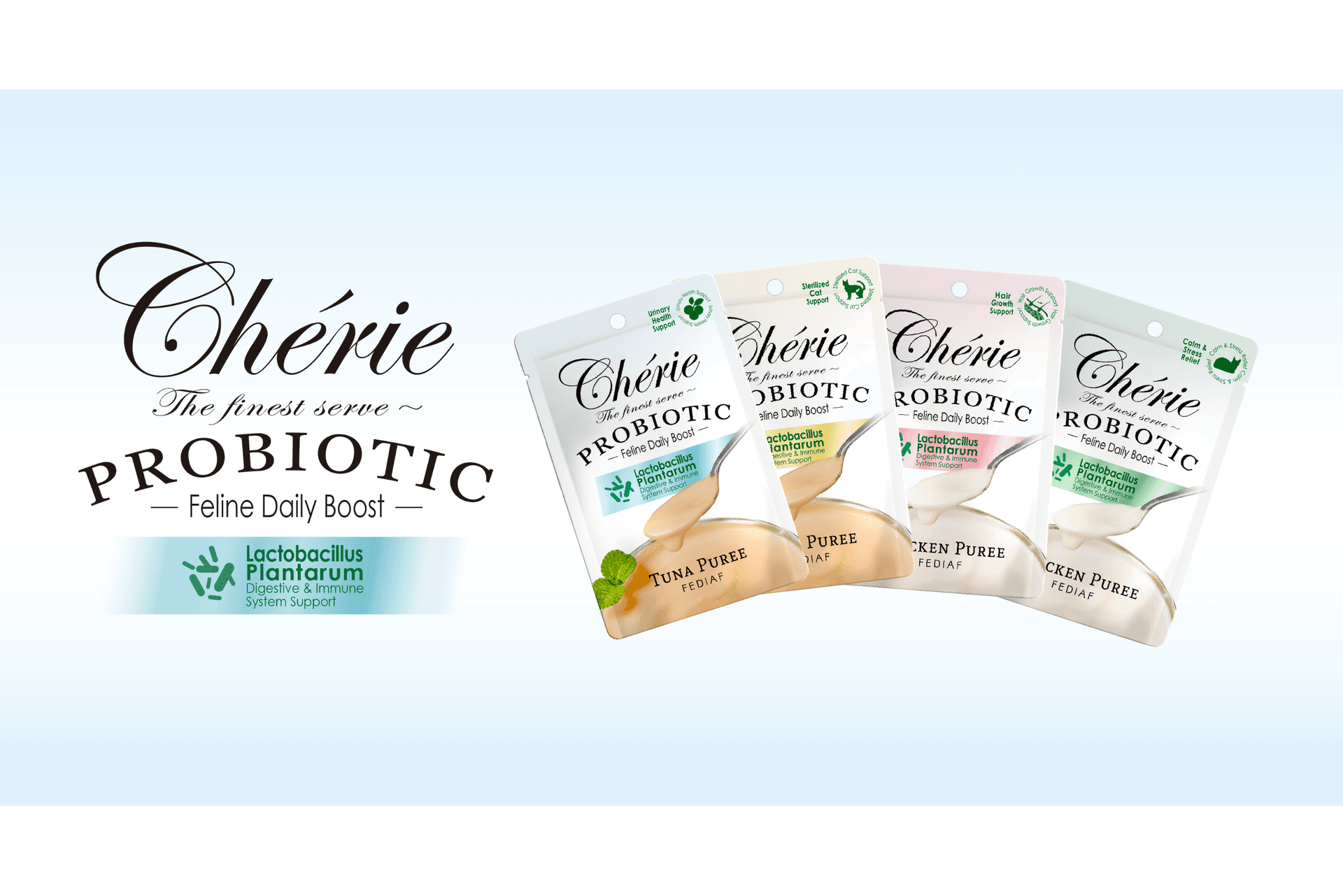 - Enriched with Lactobacillus Plantarum, Cherie Feline Daily Boost supports digestive and immune system health. This delightful formula along with creamy texture offers an irresistible taste.