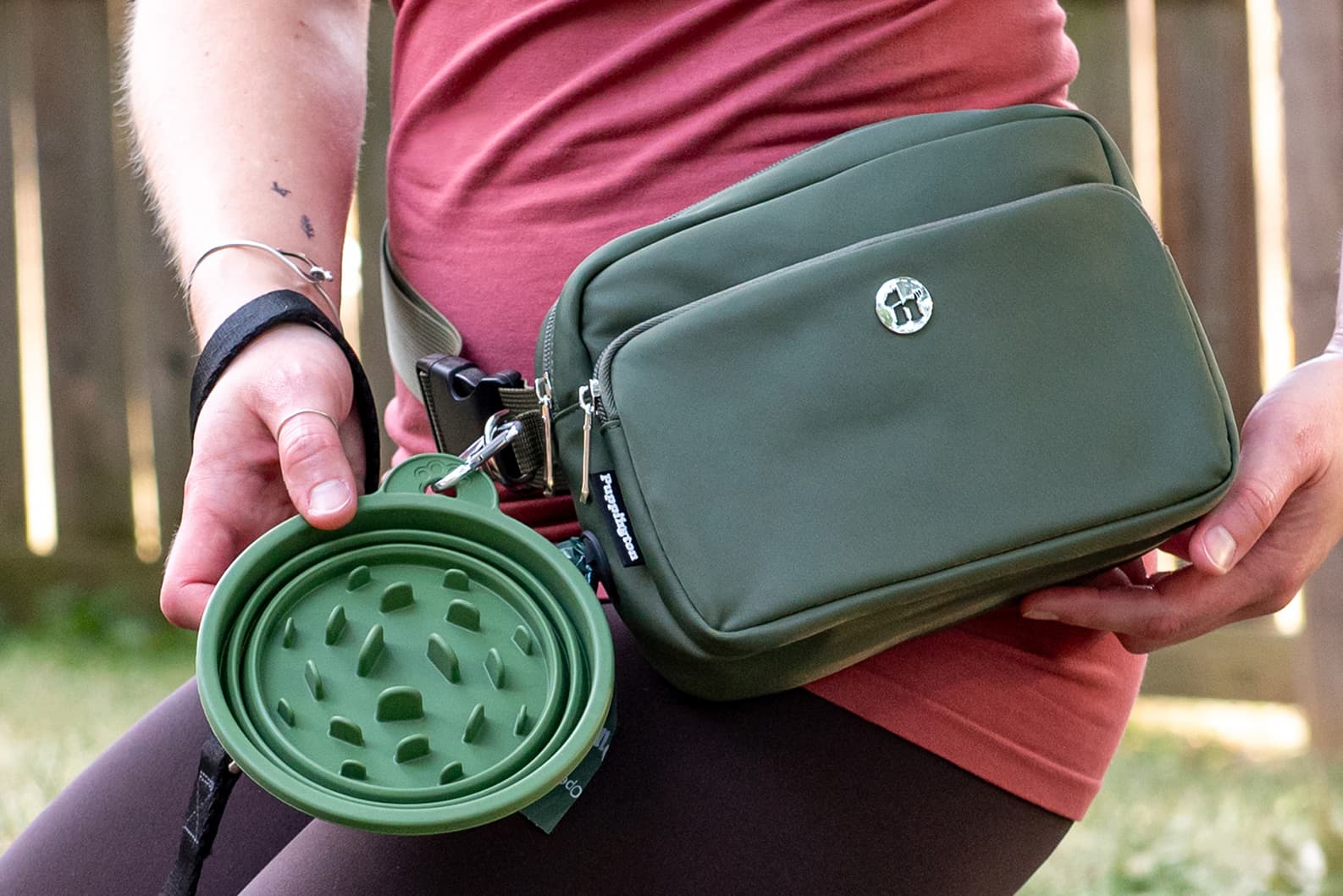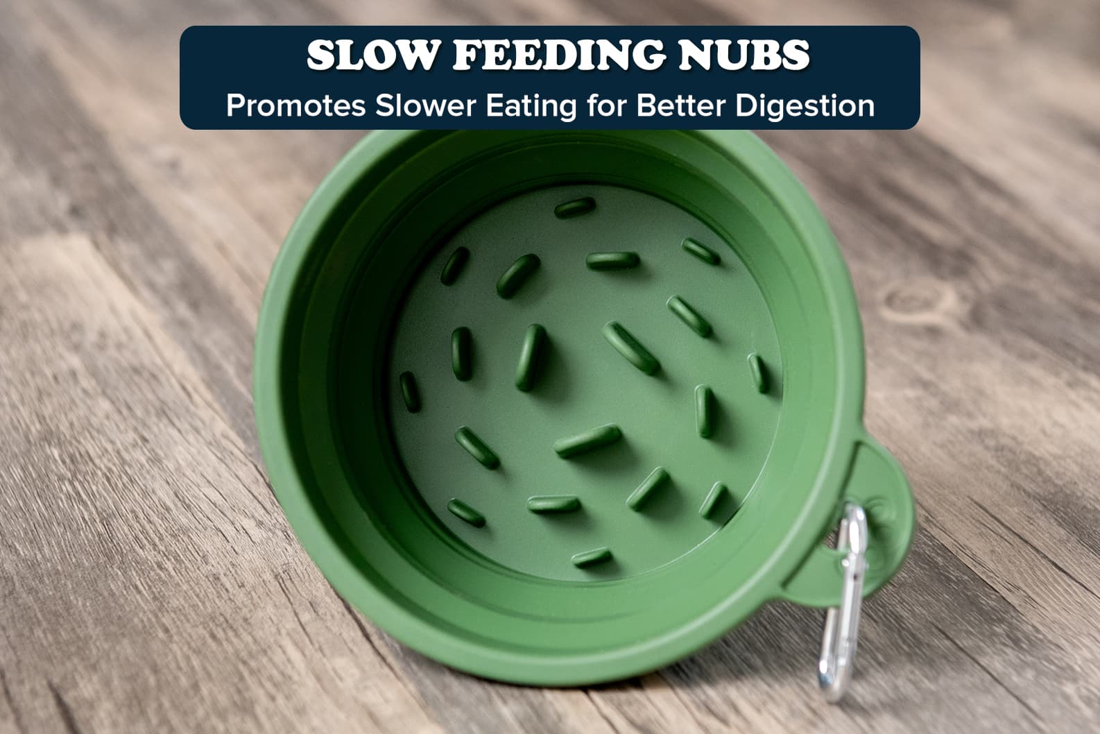 - The Puppington Slow Feeder Travel Bowl supports digestive health and keeps dogs calm. The textured surface encourages slower eating and licking, reducing bacteria for fresher breath. Dishwasher-safe for quick and hassle-free maintenance after walks, hikes, or road trips.