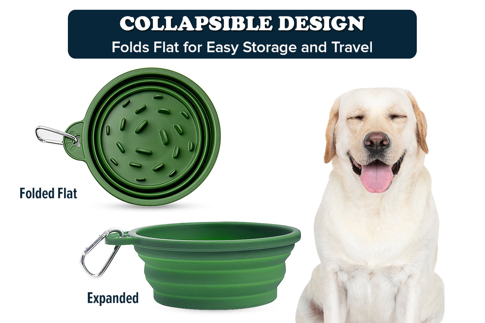 Safe, Smart, and Spill-ProofThe non-slip base keeps the bowl steady, even on uneven surfaces, while the durable design holds up to every adventure. Whether your dog needs a quick water break or a hearty snack, the generous capacity accommodates their needs without any mess. Dishwasher-safe and simple to clean, this tra ...