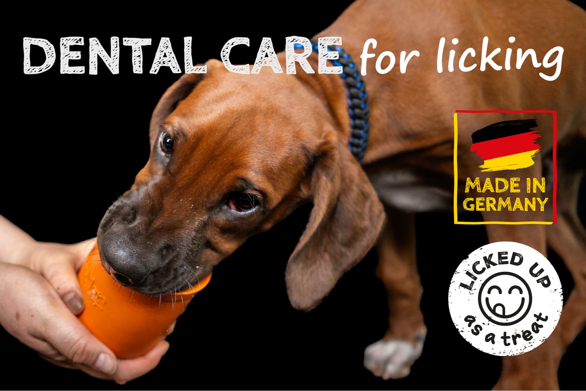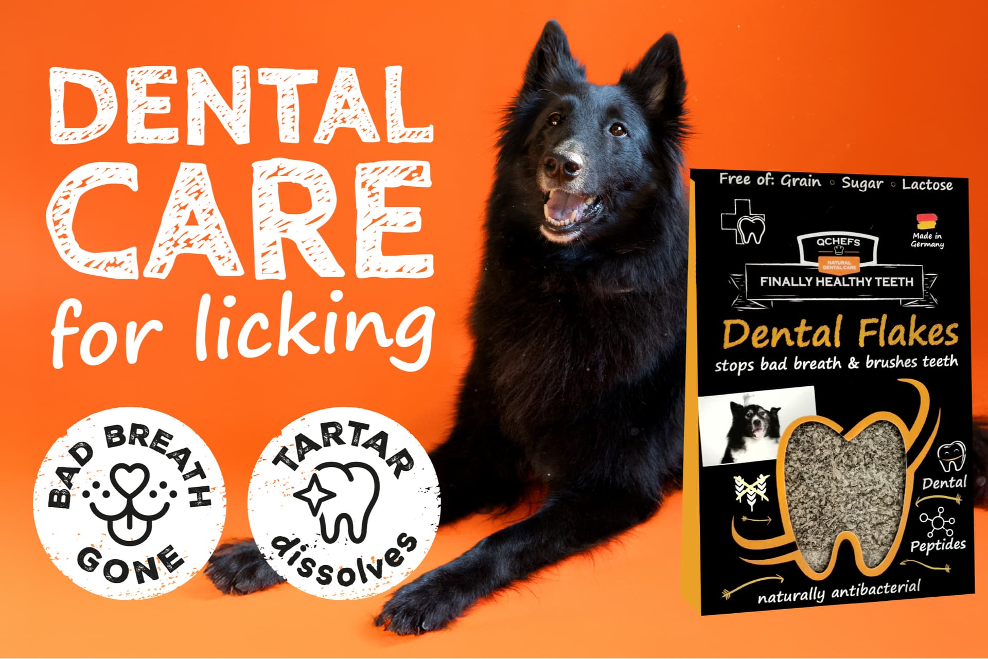 Simply lick a treat and clean the teeth at the same time! Everyone loves that - bad breath and tartar are gone - super easy and with fun. Highly effective and with best price/product ratio - which gets even better when they are licked from the licking mat. This way, they spread even better in the mouth. Simply spread the Dental Flakes on top of some organic coconut oil or yogurt. Even suitable for dogs that are not allowed to have anything else.