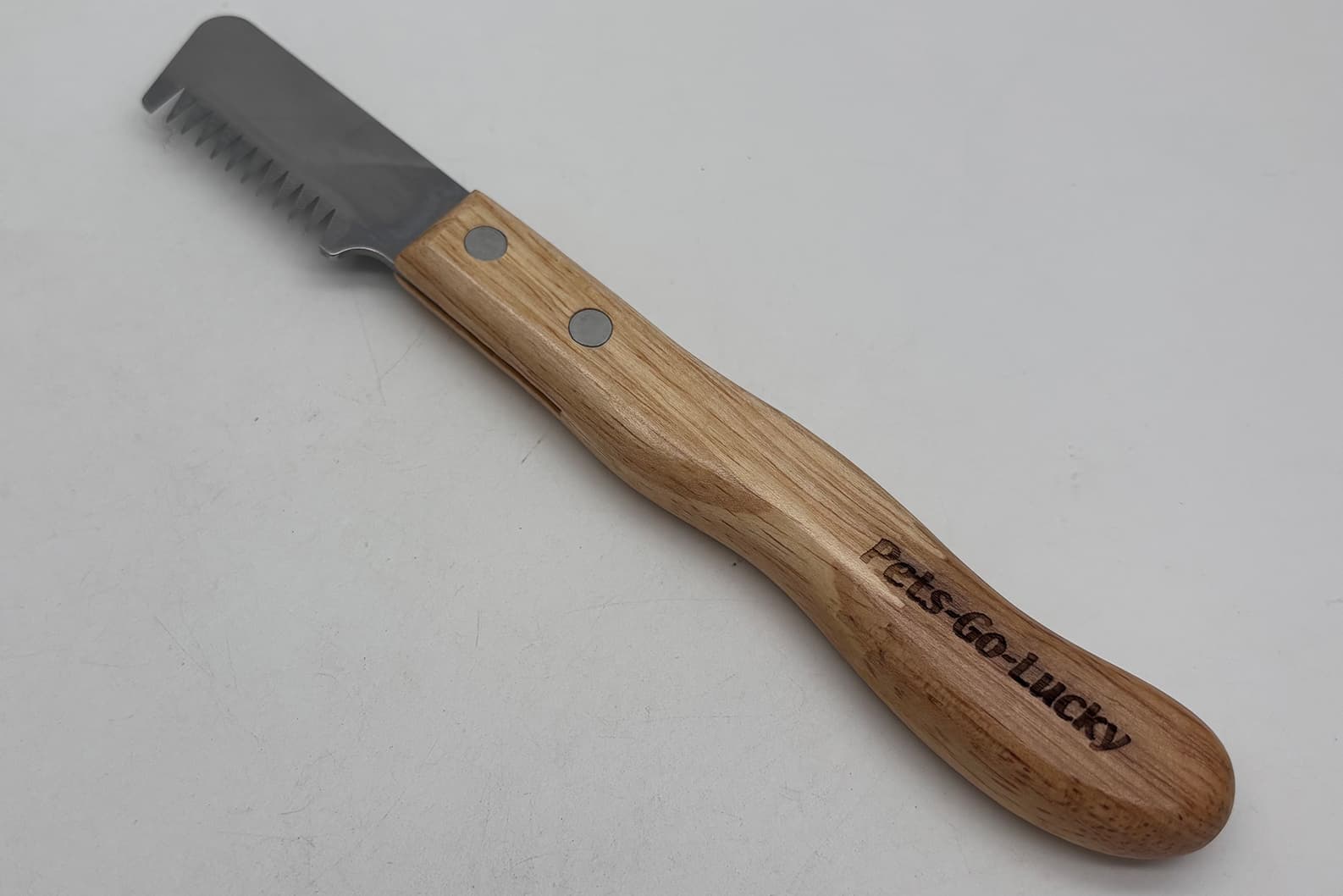 This pet stripping knife features a sturdy wooden handle and sharp stainless steel blades, ideal for terriers, wire-haired breeds, and other "hard-coated" pets that need coat stripping. It efficiently removes dead, coarse hair while preserving the healthy undercoat, making it perfect for grooming and "breaking in" new coats. Ergonomic design ensures a secure grip for precise, comfortable use.