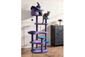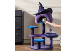 This cat tree draws inspiration from the whimsical magic of Halloween, featuring a wizard's hat as its central design element. Combining multiple functions into one, it's perfect for multi-cat households and is a favorite among kitties.