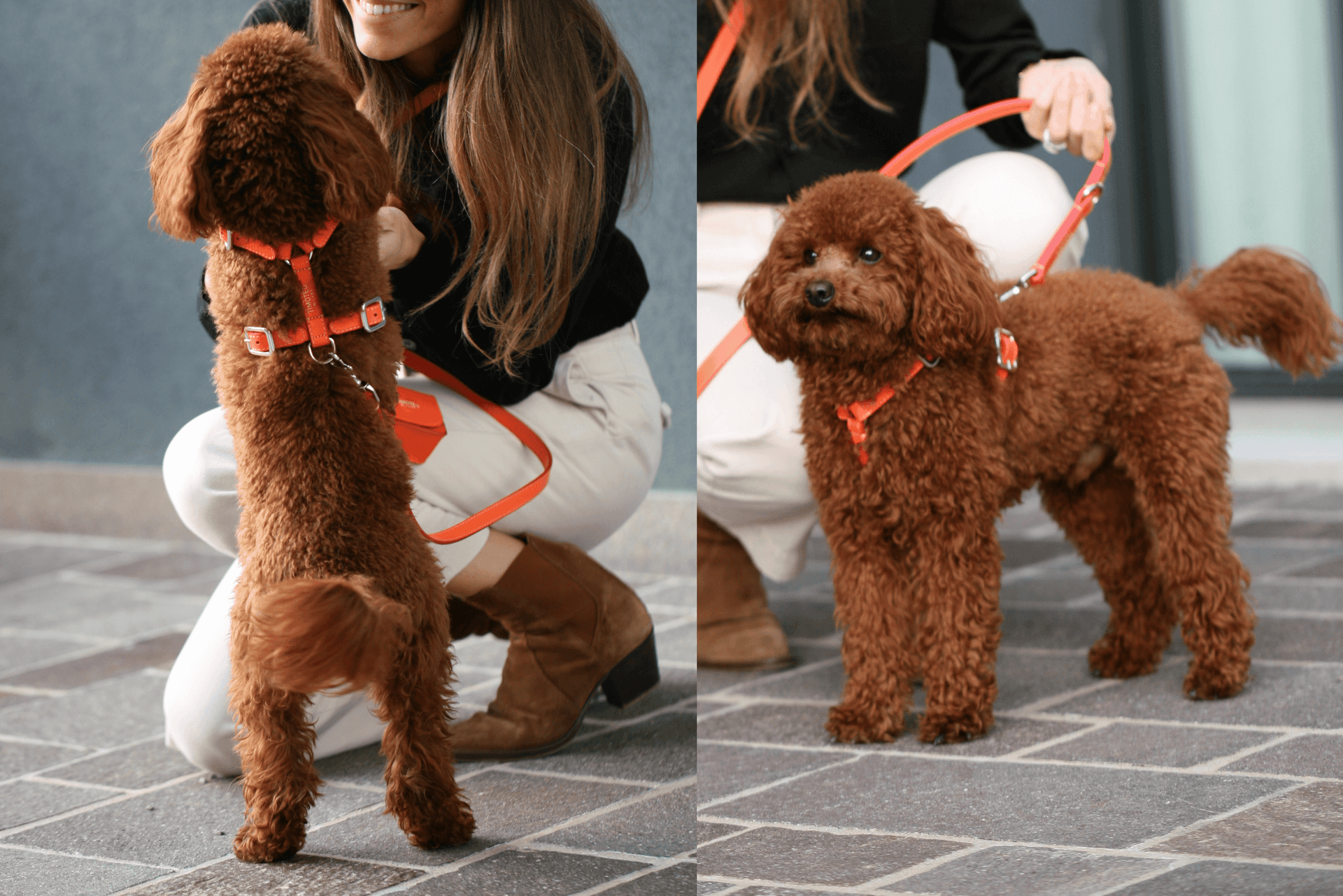 The colored leather H-harnesses by Timotèo Milano combine comfort, safety, and contemporary design with an extensive color selection. They are created to meet functional needs while offering strong aesthetic versatility within a refined, high-quality product.