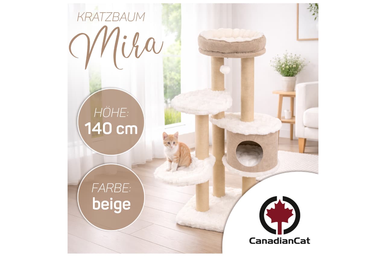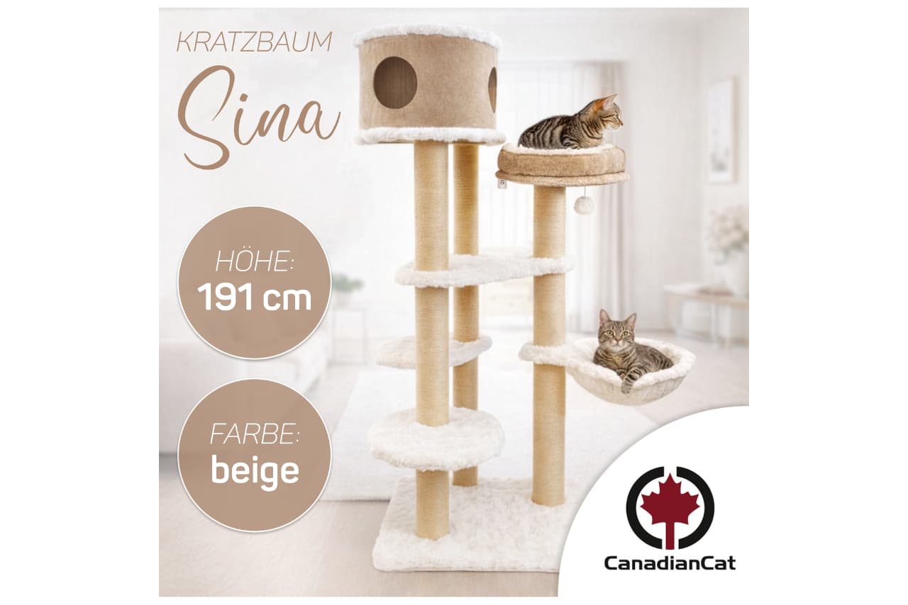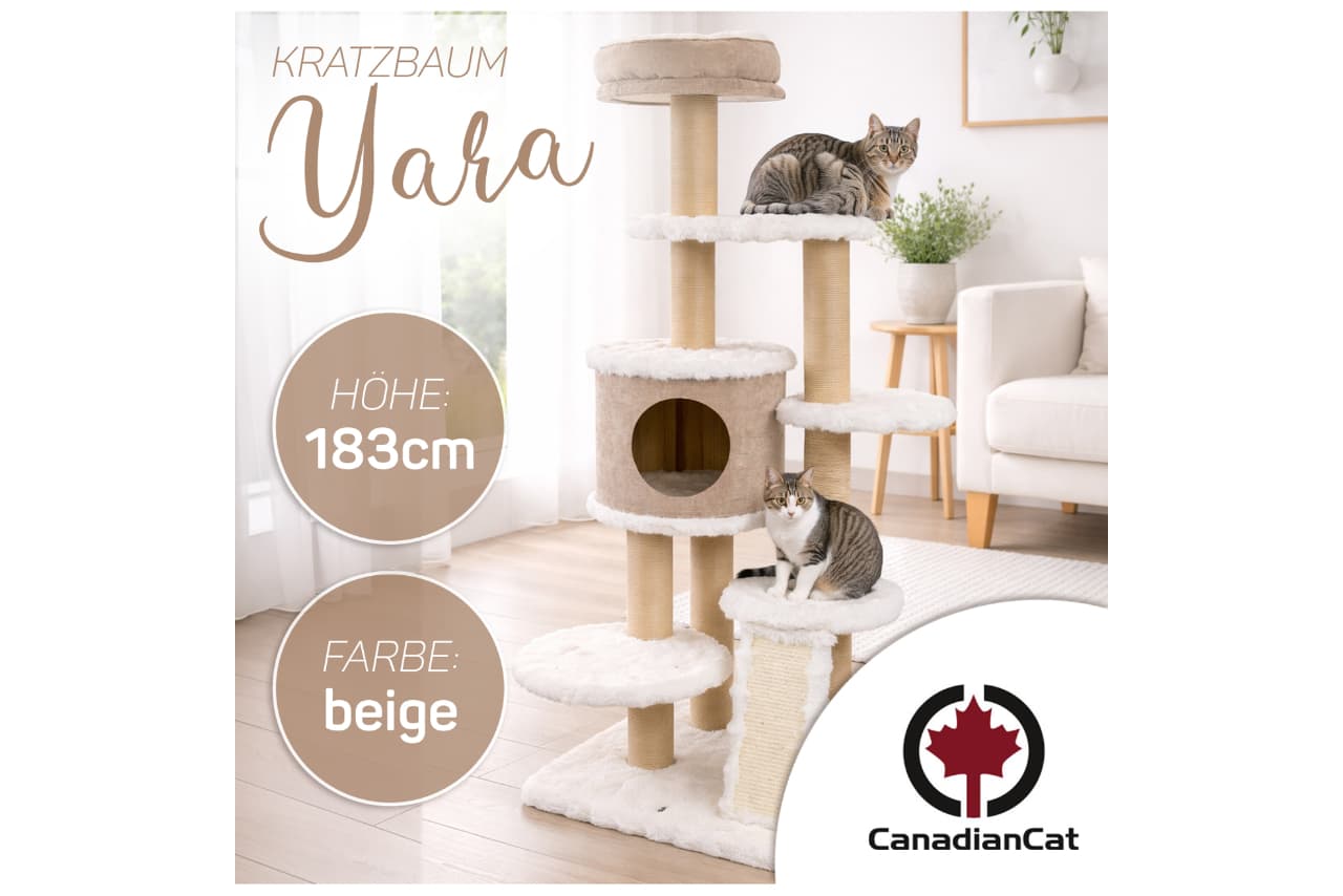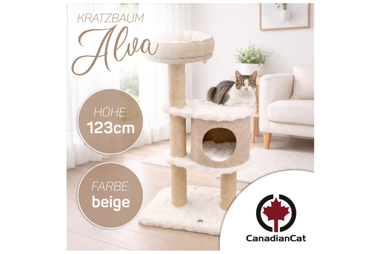 The Ivory Living cat tree series by CanadianCat focuses on clear design language and a particularly robust construction. At its core are paper-wrapped scratching posts, which are significantly more durable than sisal: they do not fray, wear down more evenly, and remain fully functional even under intensive use.