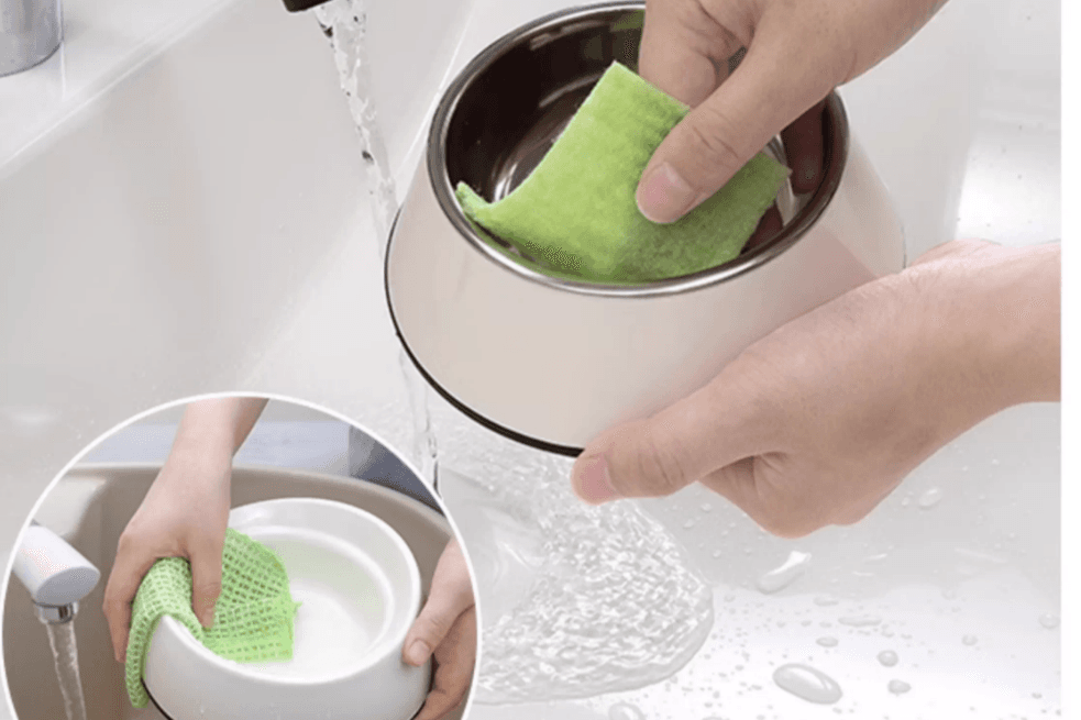 The pet dishcloth is designed to provide an efficient and hygienic solution for cleaning pet bowls and feeding accessories. It effectively removes stubborn food residues, grease, and slime without the need for detergent, making it suitable for daily use.